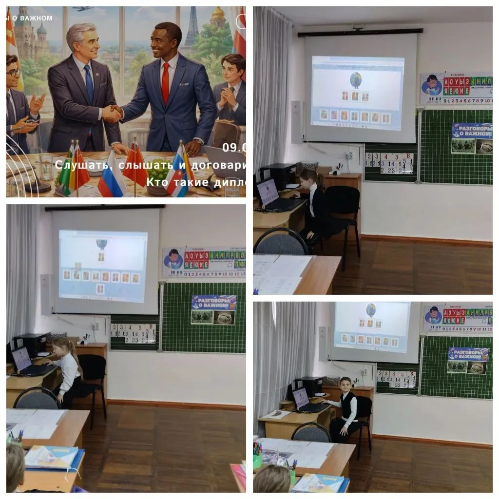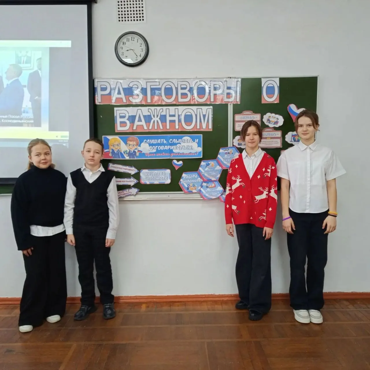 Сегодня в нашей школе прошли традиционные внеурочные занятия «Разговоры о важном». Тема этой недели была особенно актуальной: «Слушать, слышать и договариваться. Кто такие дипломаты?».