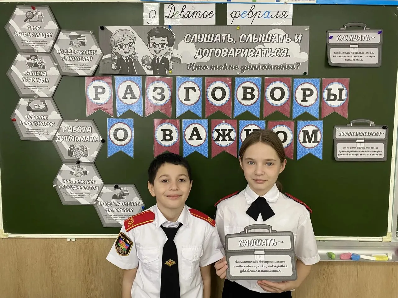 А завершился урок неожиданным и важным выводом. Александр Александрович рассказал детям, что помимо силы и мужества, есть и другой способ отстаивать интересы и сохранять мир — дипломатия. Он напомнил, что 10 февраля в России отмечается День дипломатического работника, и эти люди продолжают защищать страну, но уже на другом фронте — фронте слова, переговоров и международного диалога.