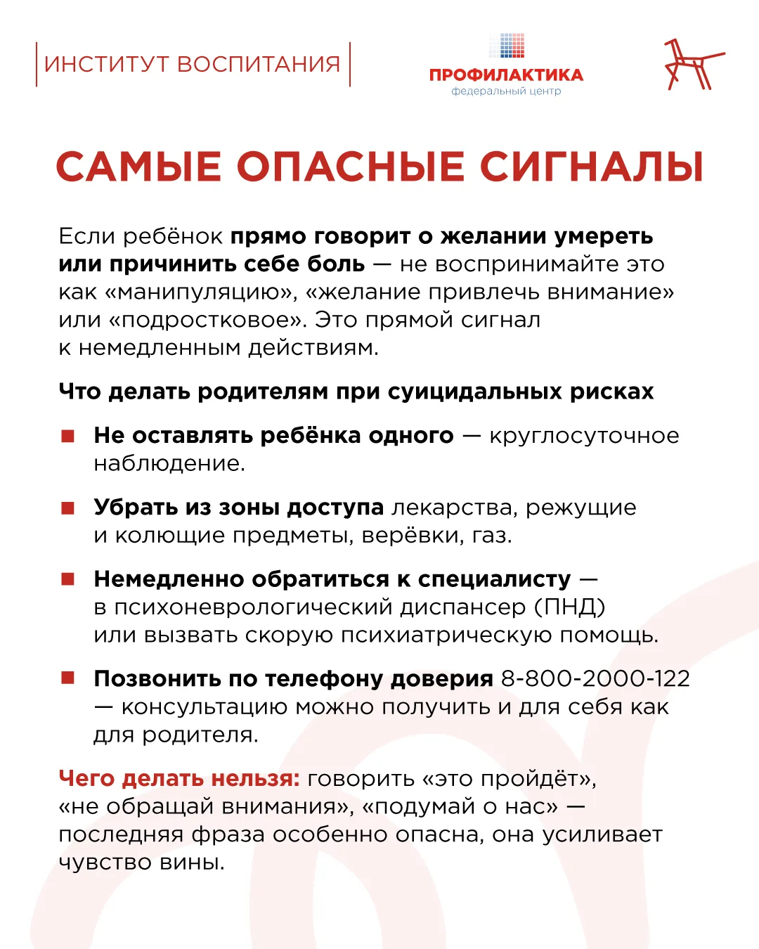 Как распознать эти сигналы и что делать? Отвечаем в карточках, которые подготовили совместно со специалистами федерального центра «Профилактика».