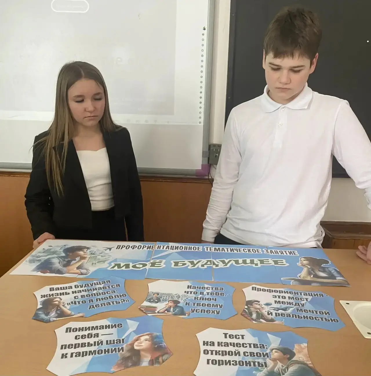 В рамках профориентационного курса РОССИЯ- МОИ ГОРИЗОНТЫ в школе прошли занятия, направленные на помощь подростков в выборе будущей профессии МОЕ БУДУЩЕЕ.