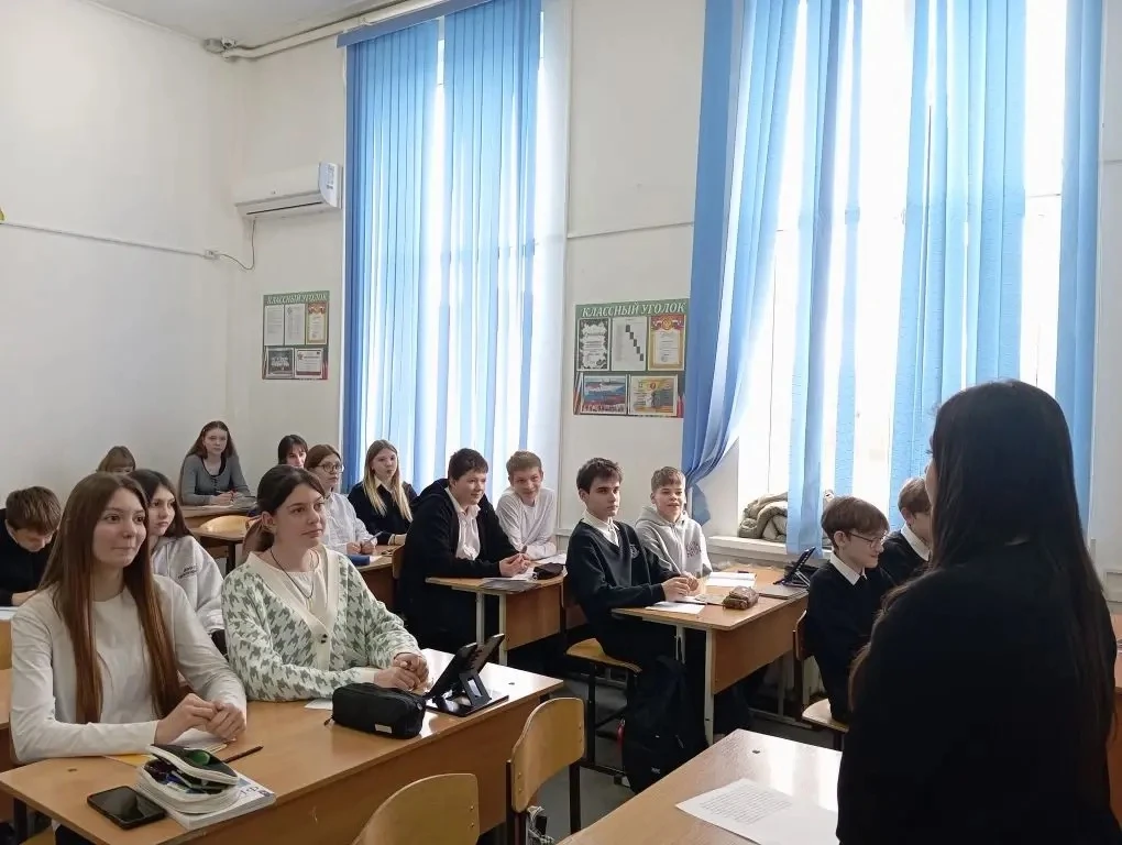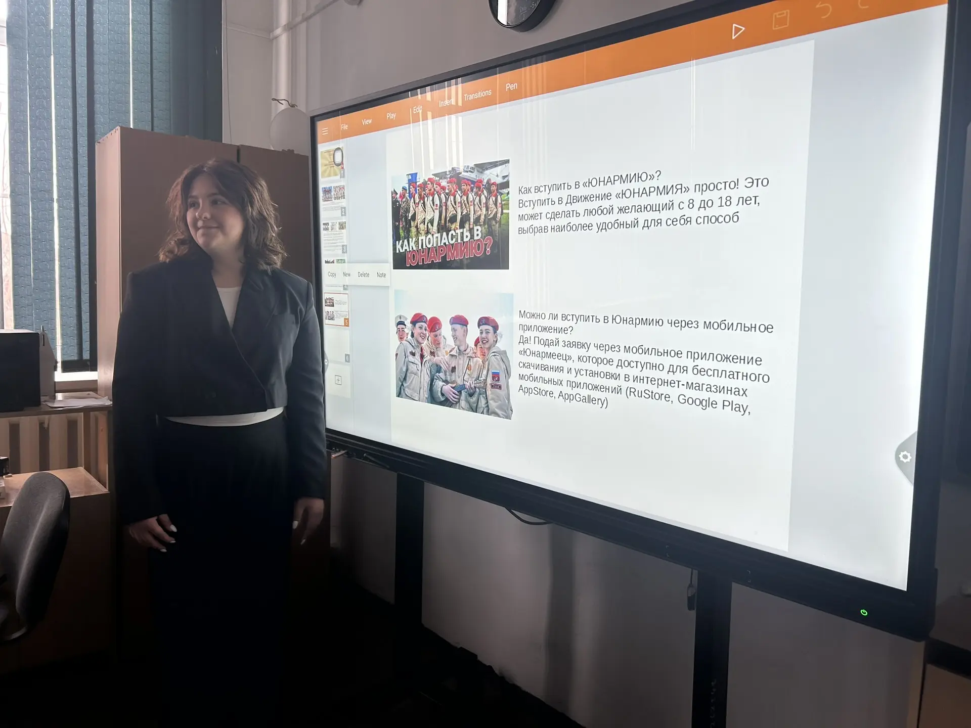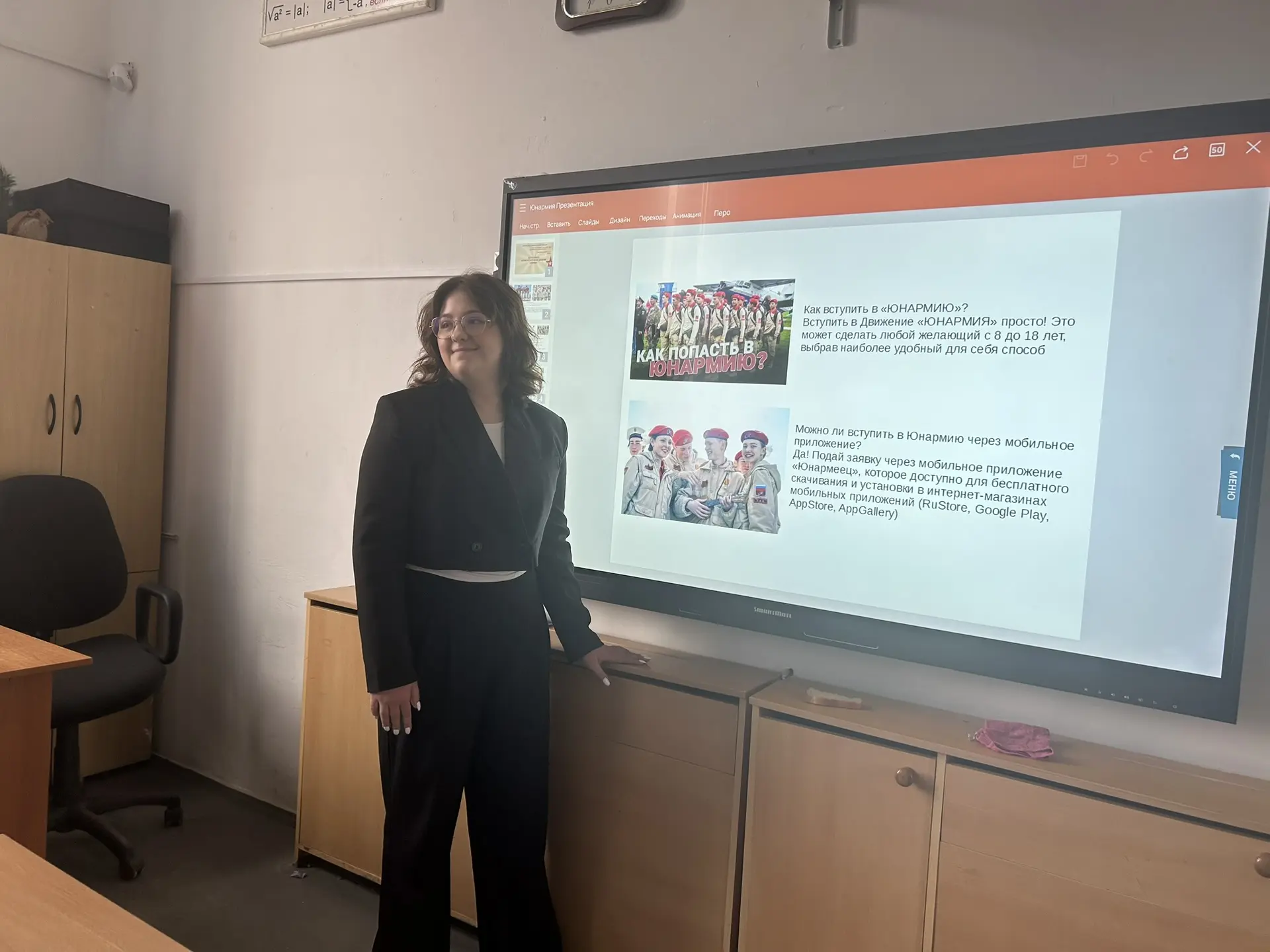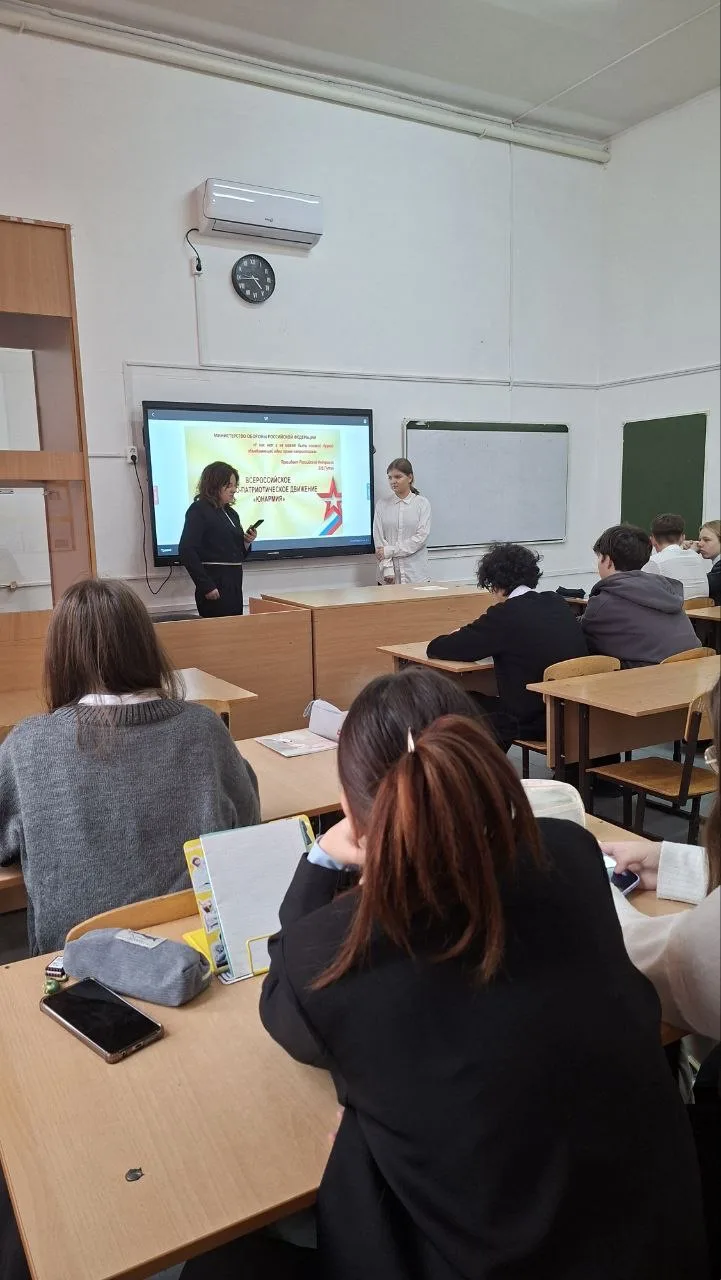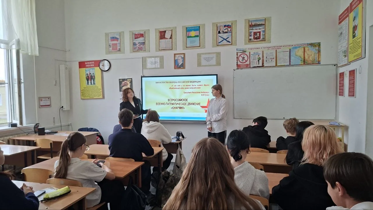 На этой неделе у учеников 8-9 классов прошло мероприятие с Есенией - председателем школьного первичного отделения российского «Движения Первых». Она подробно рассказала ребятам о Всероссийском детско-юношеском военно-патриотическом общественном движении «Юнармия».
