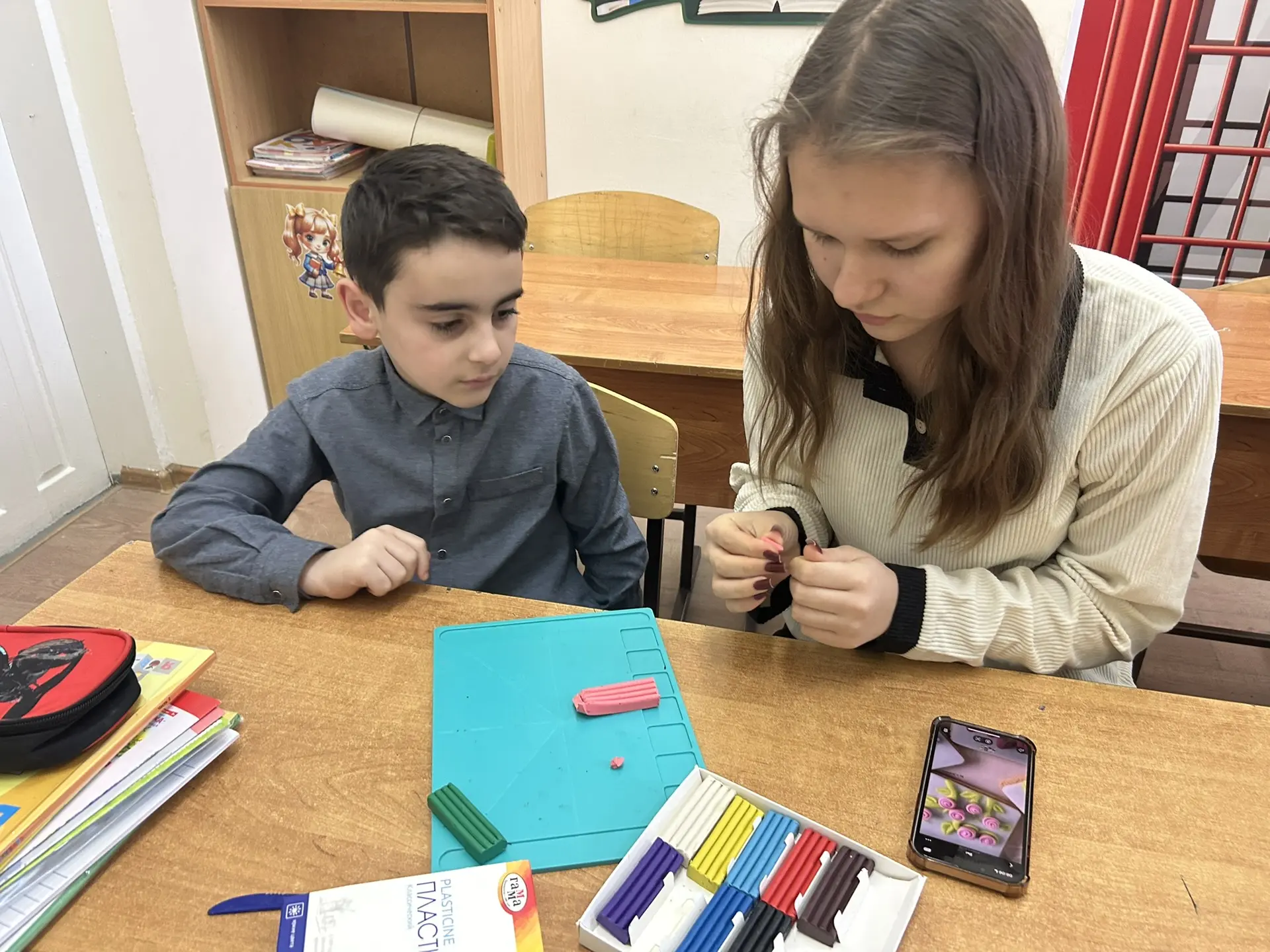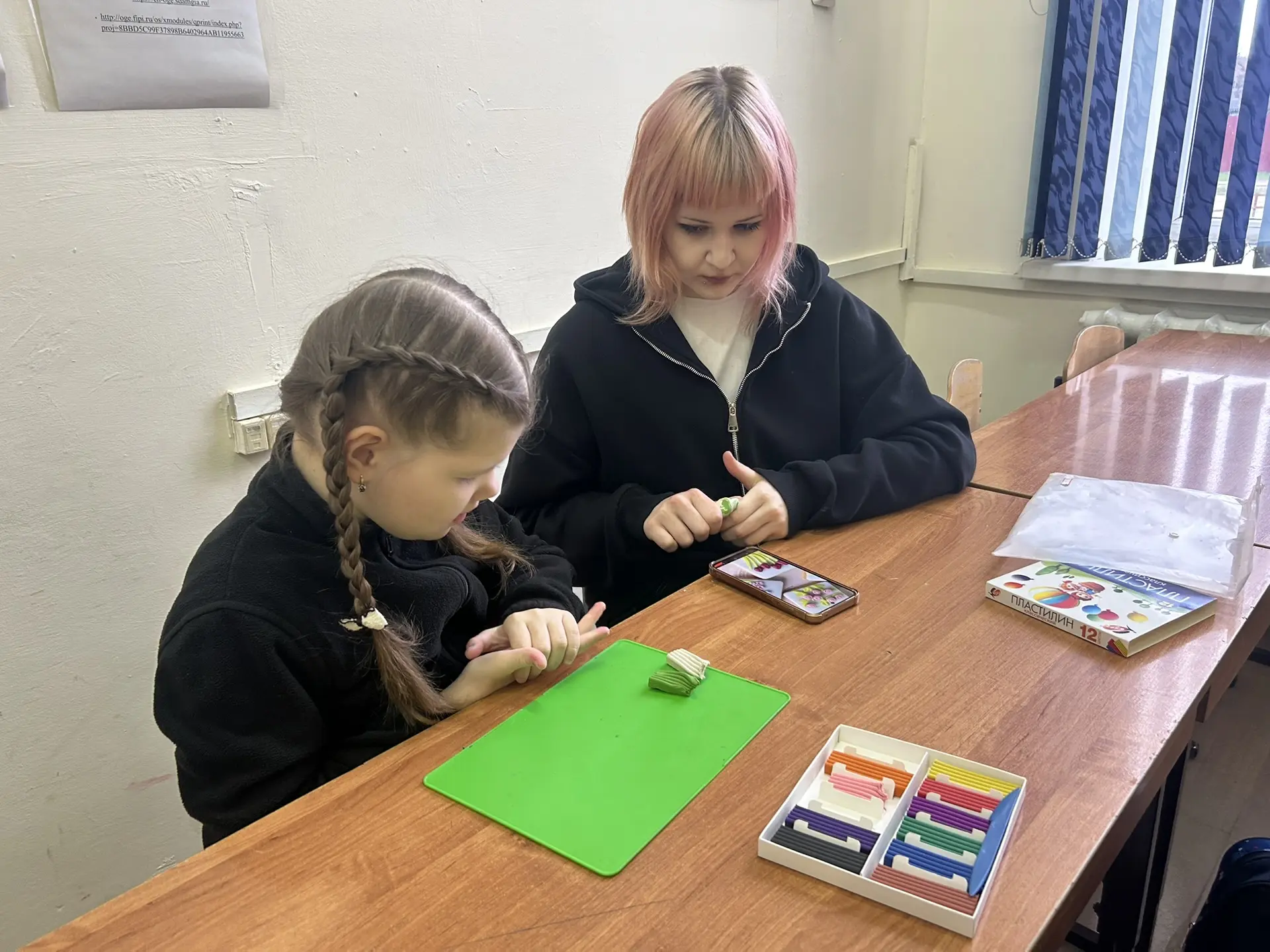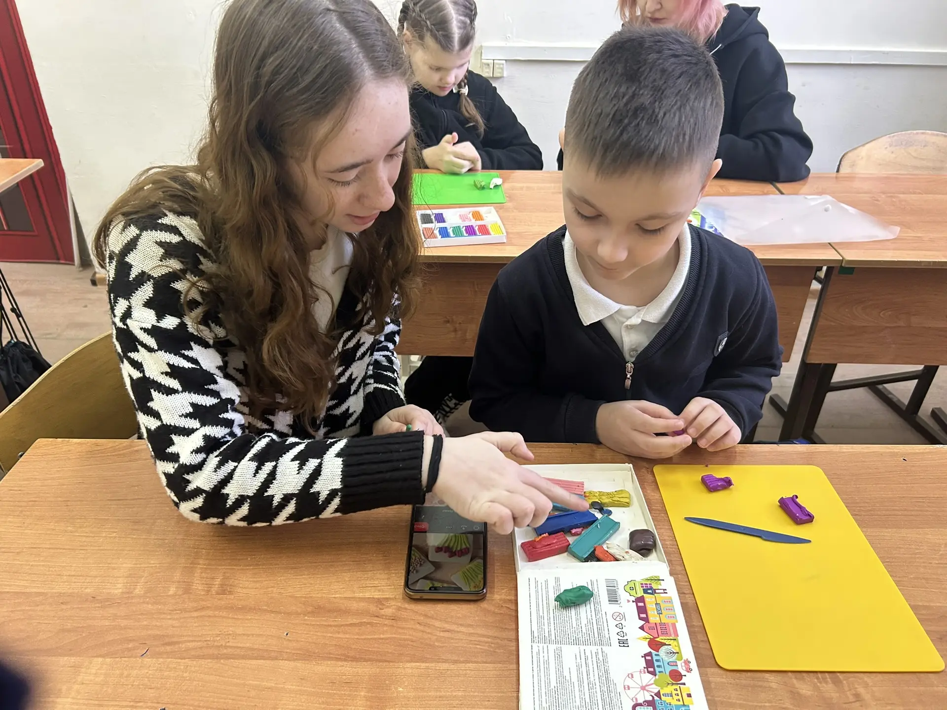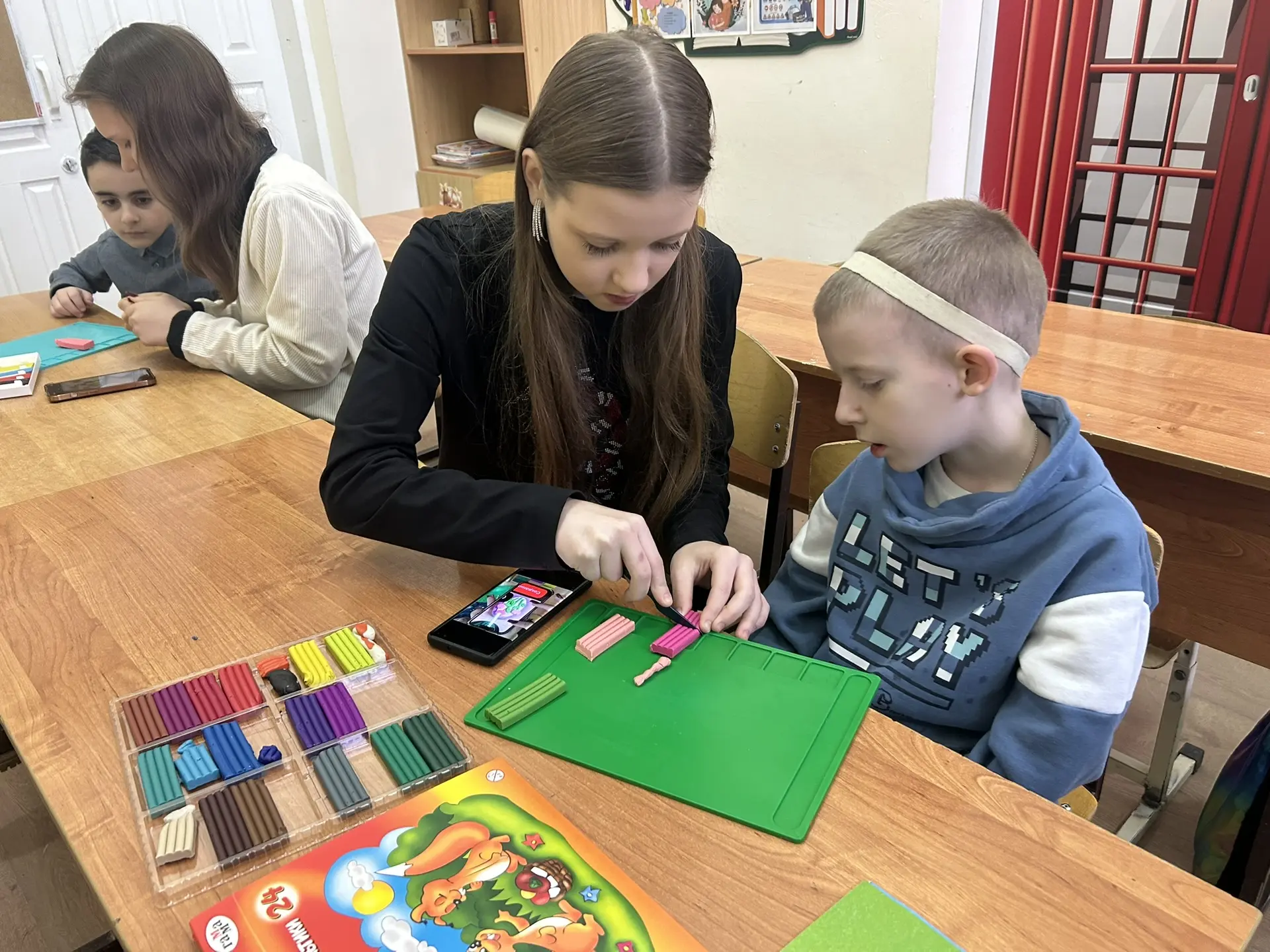 Старшие ребята терпеливо помогали малышам лепить яркие поделки для мам и бабушек!