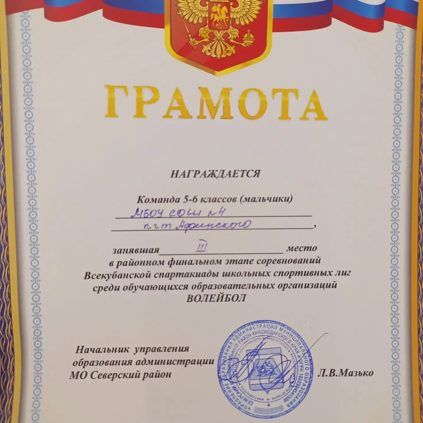 Обучающиеся нашей школы активно принимают участие в финальном муниципальном этапе Всекубанской спартакиады школьных спортивных лиг в 2025 -2026 учебном году по виду спорта волейбол.
