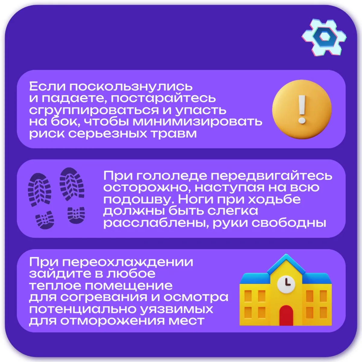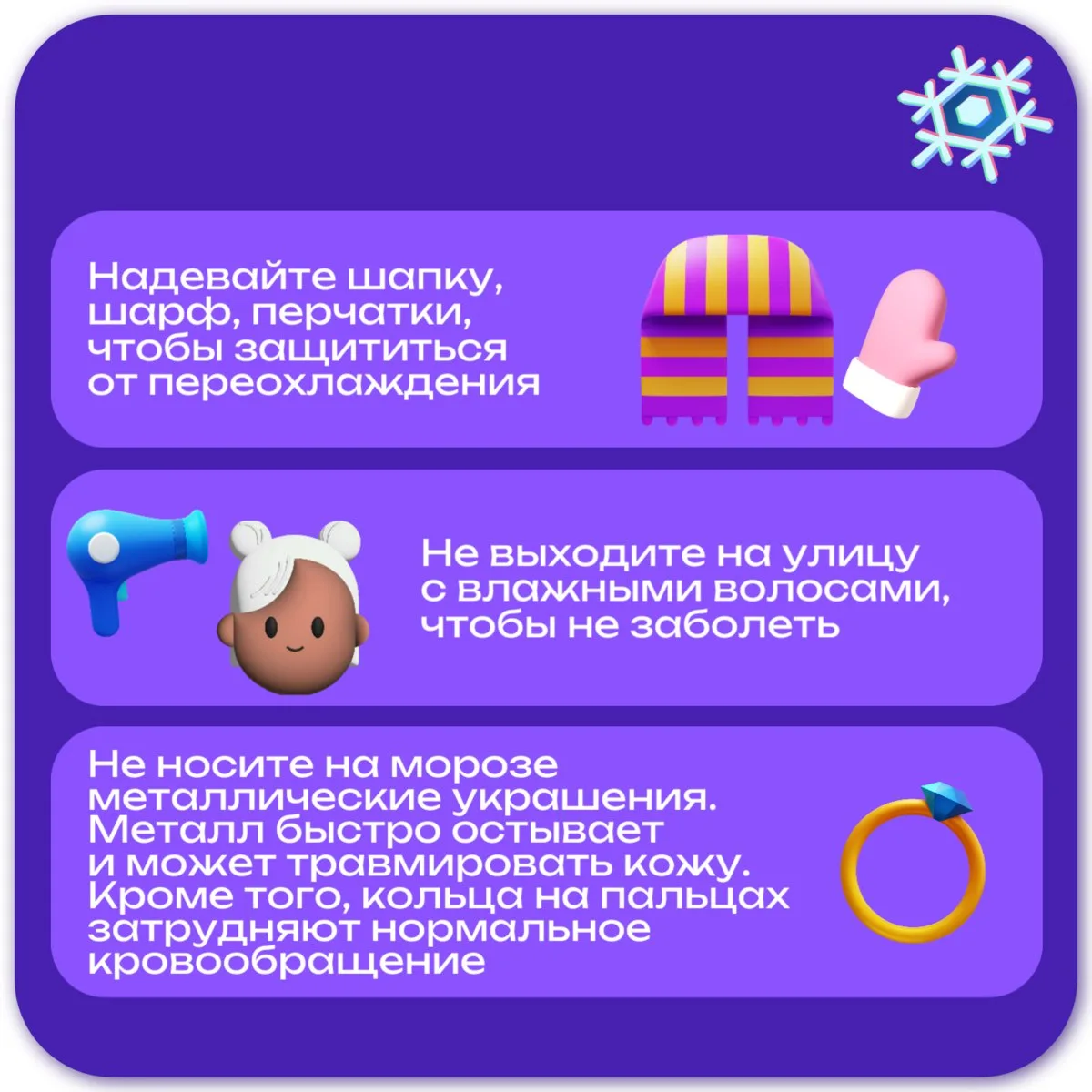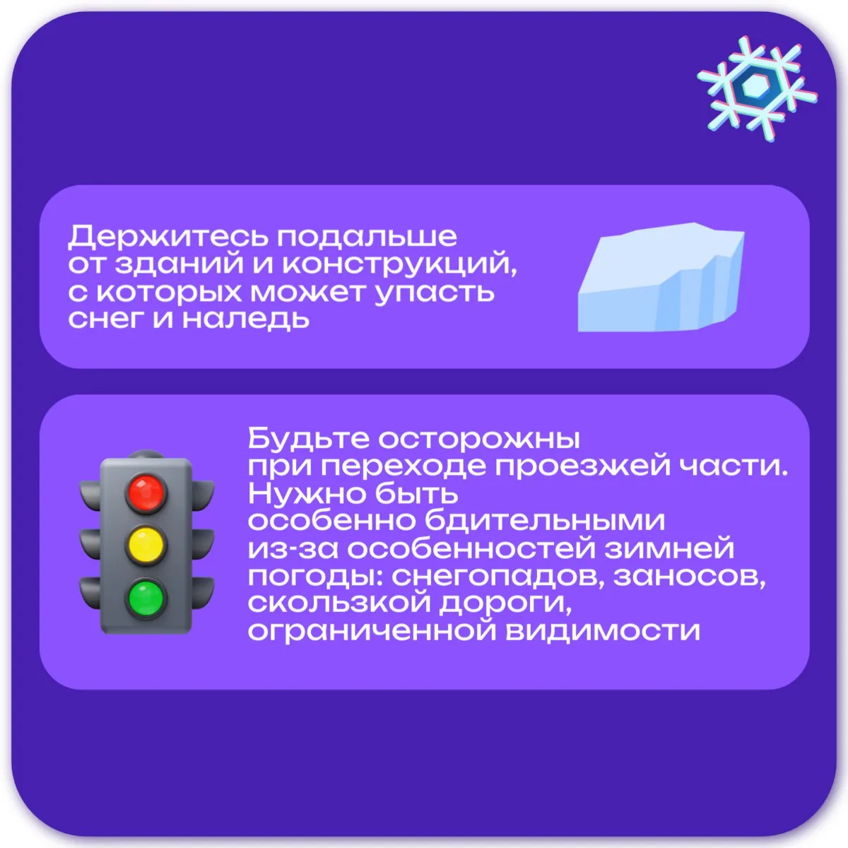 Но зимой есть и много рисков. В карточках мы собрали несколько рекомендаций по безопасному поведению в это время года ❄️