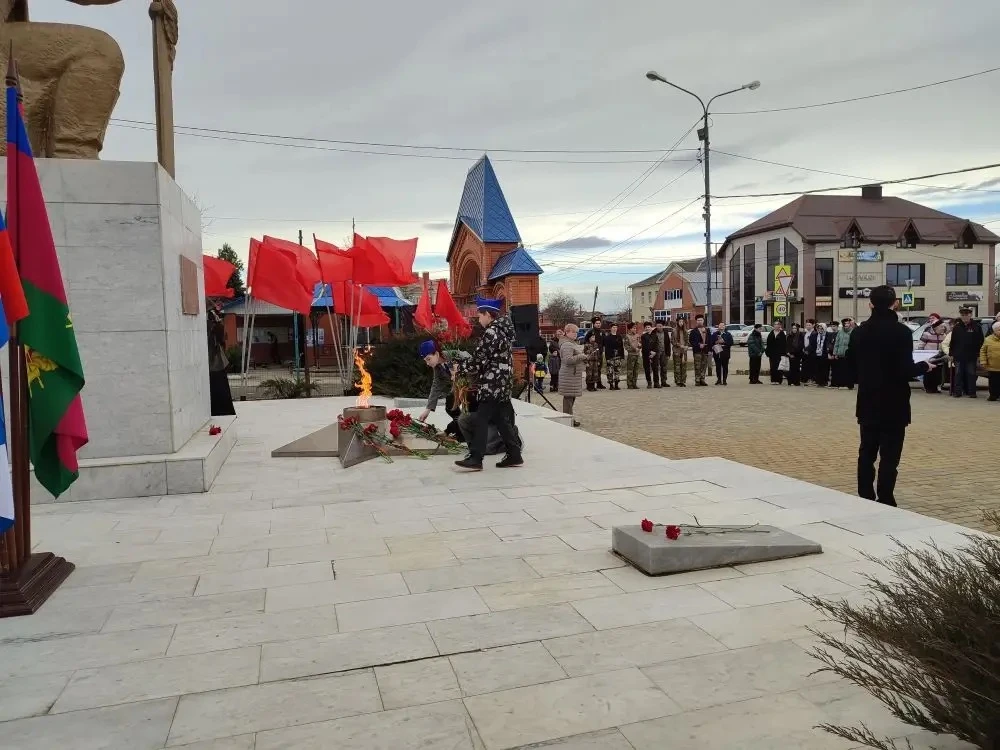 В Афипском городском поселении на мемориале воинской славы «Вечный огонь» прошло торжественно-траурное возложение цветов посвященное этому памятному дню. В мероприятии приняли участие Юные жуковцы нашей школы.