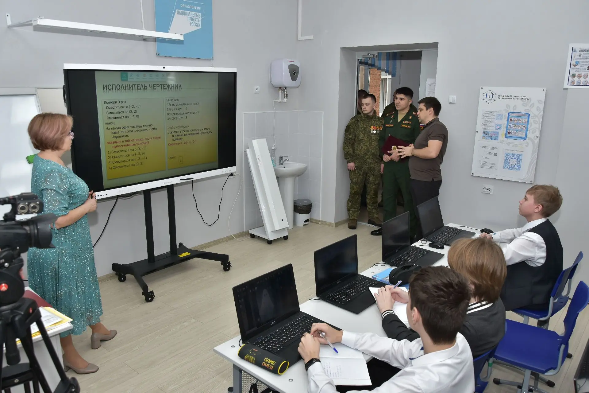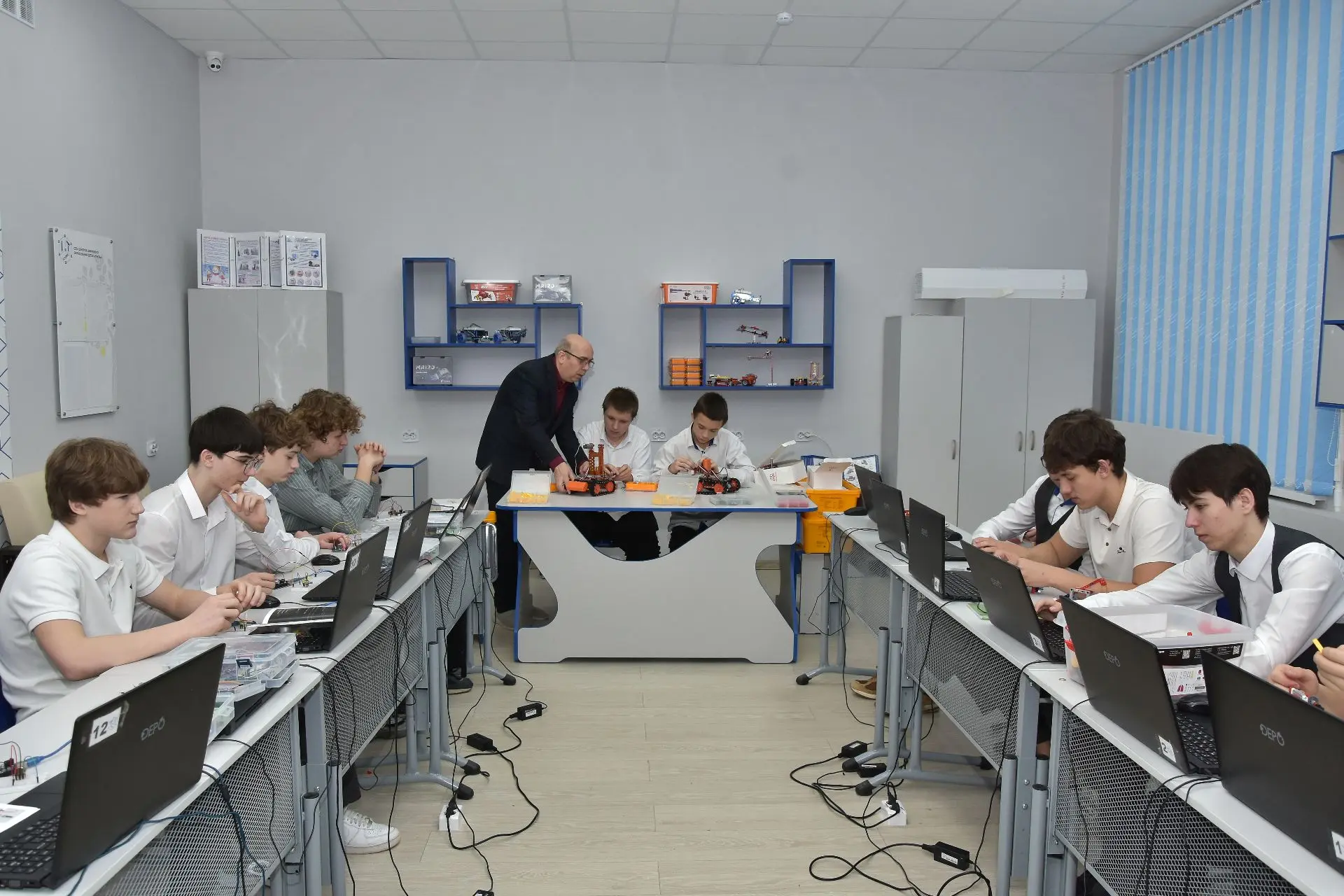 Гостей встретили просторные светлые кабинеты, оснащённые по последнему слову техники. Ребята с горящими глазами показывали свои проекты: кто‑то программировал роботов, кто‑то погружался в виртуальную реальность, а кто‑то демонстрировал навыки управления квадрокоптером на виртуальном симуляторе.