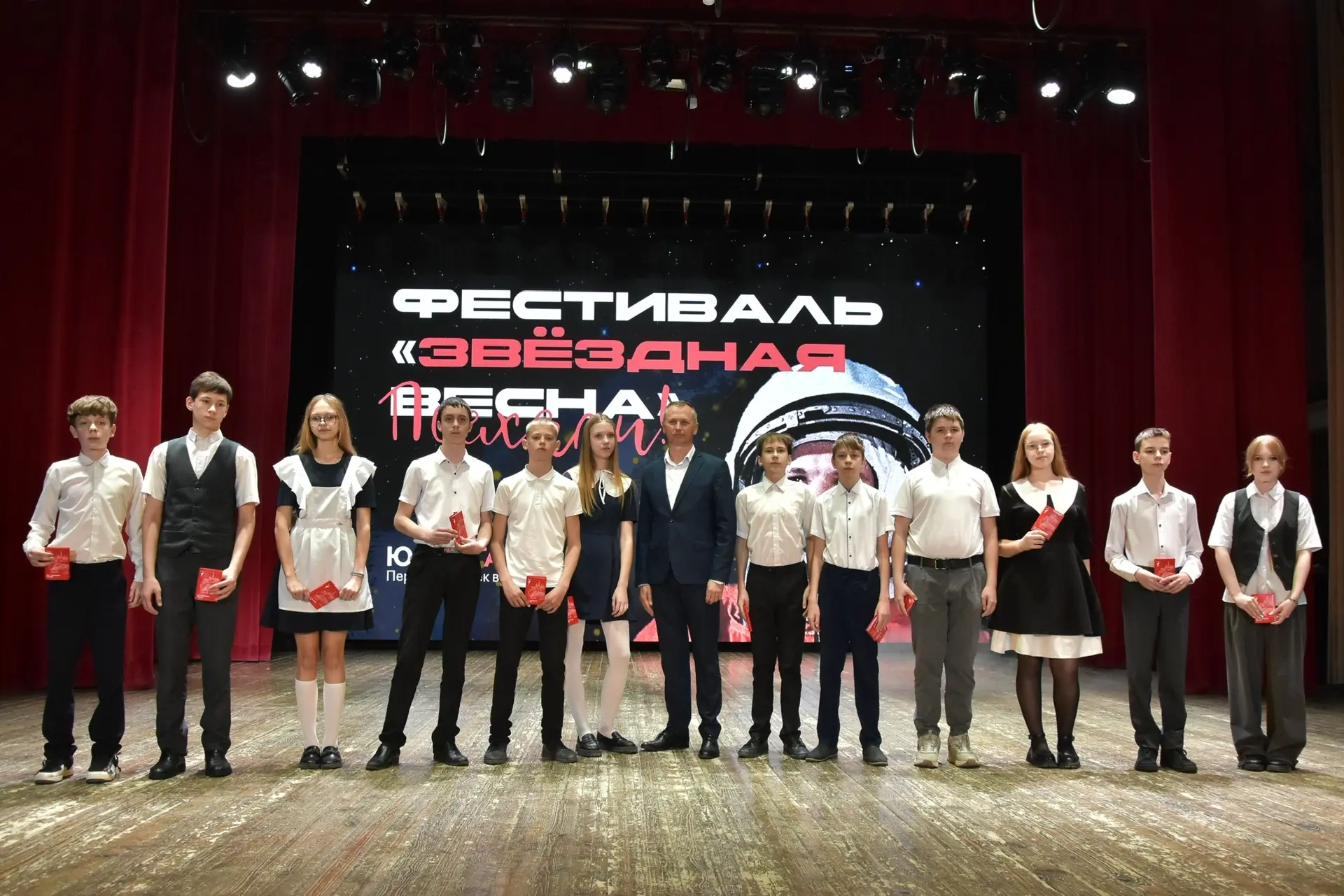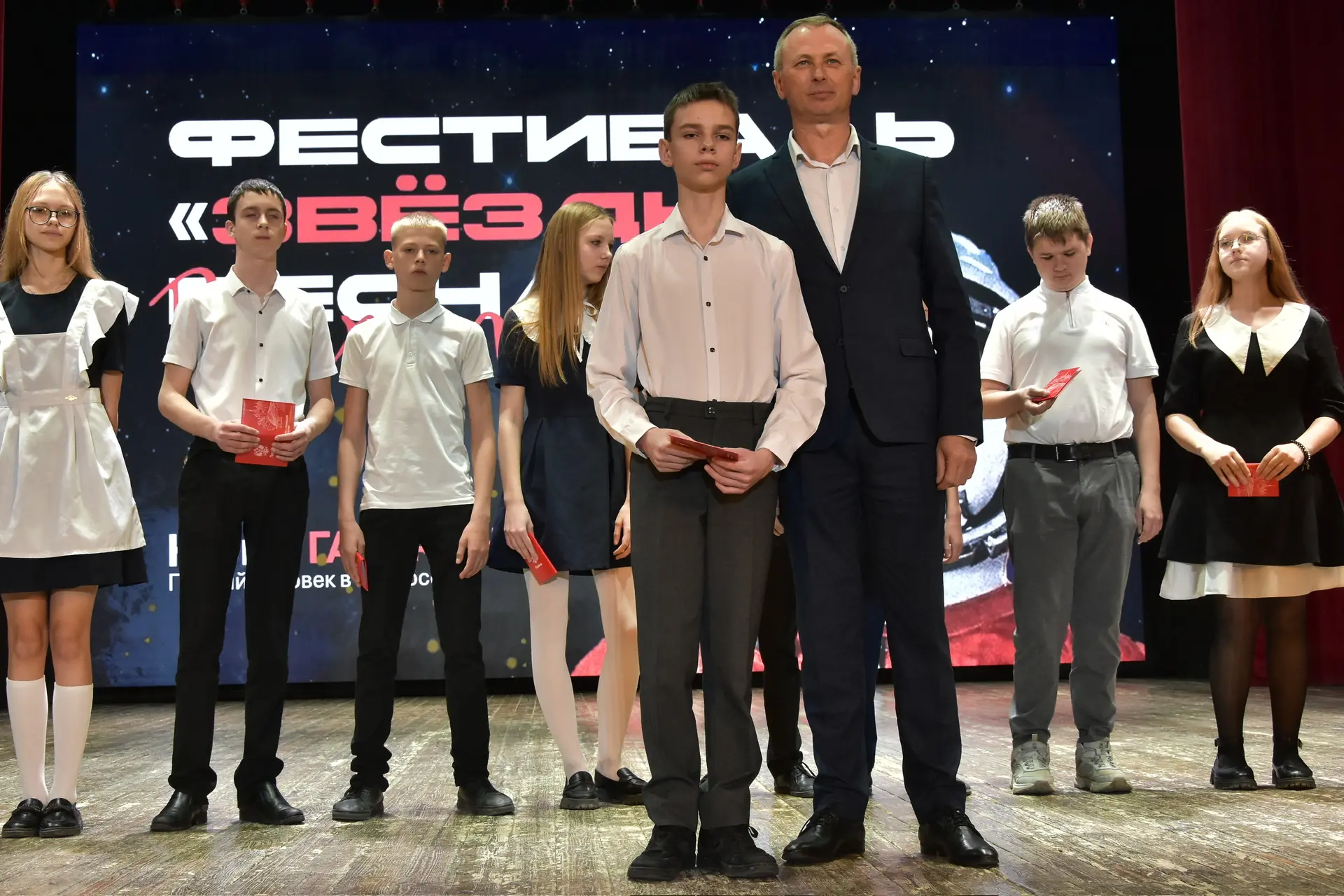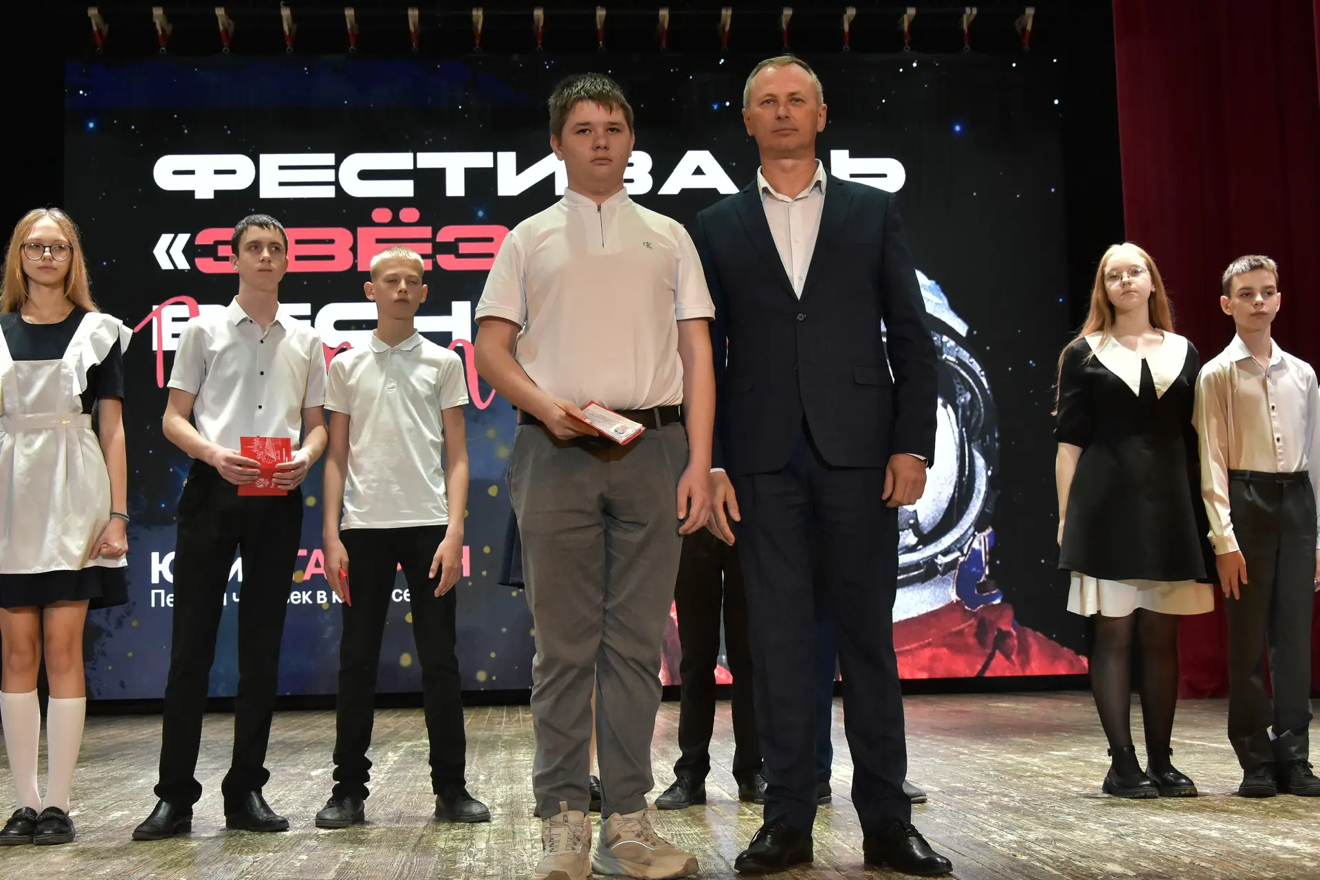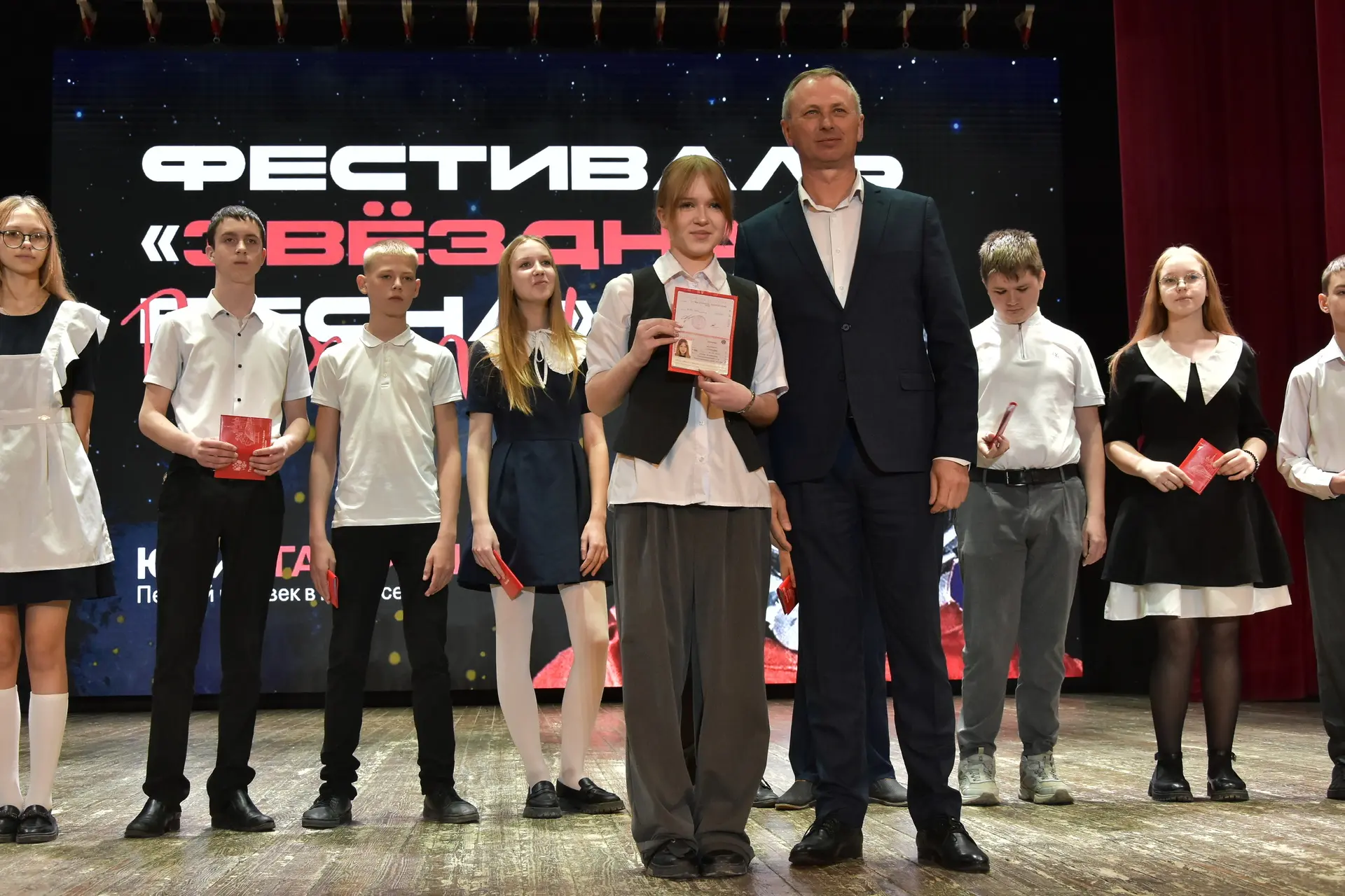 На фестивале «Звёздная весна» в Городском доме культуры 14‑летние юноши и девушки сделали важный шаг во взрослую жизнь. Главный документ им вручил заместитель главы Славянского района Виталий Иванович Титаренко — в рамках Всероссийской акции Движения Первых «Мы — граждане России!».