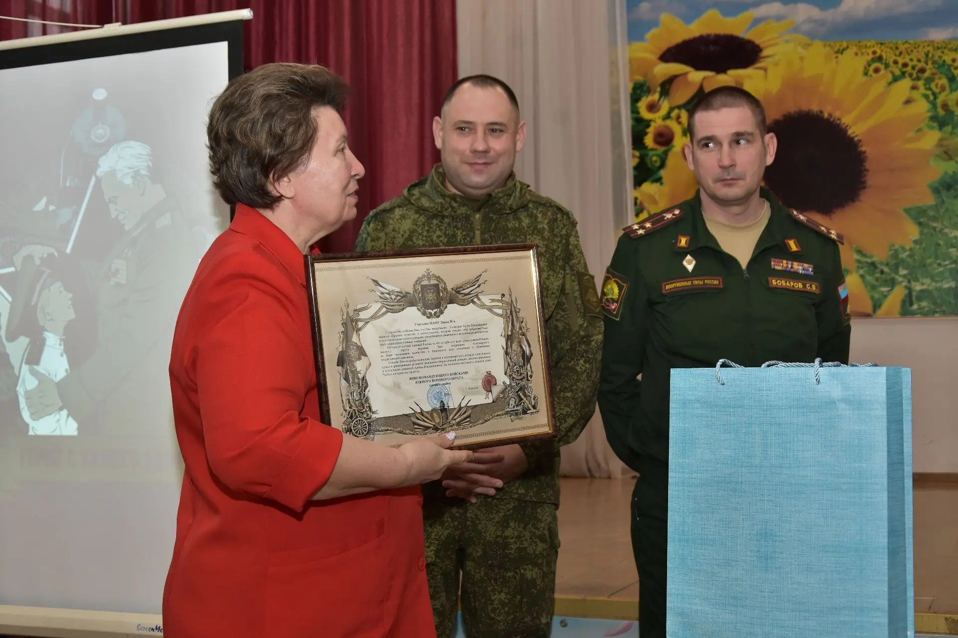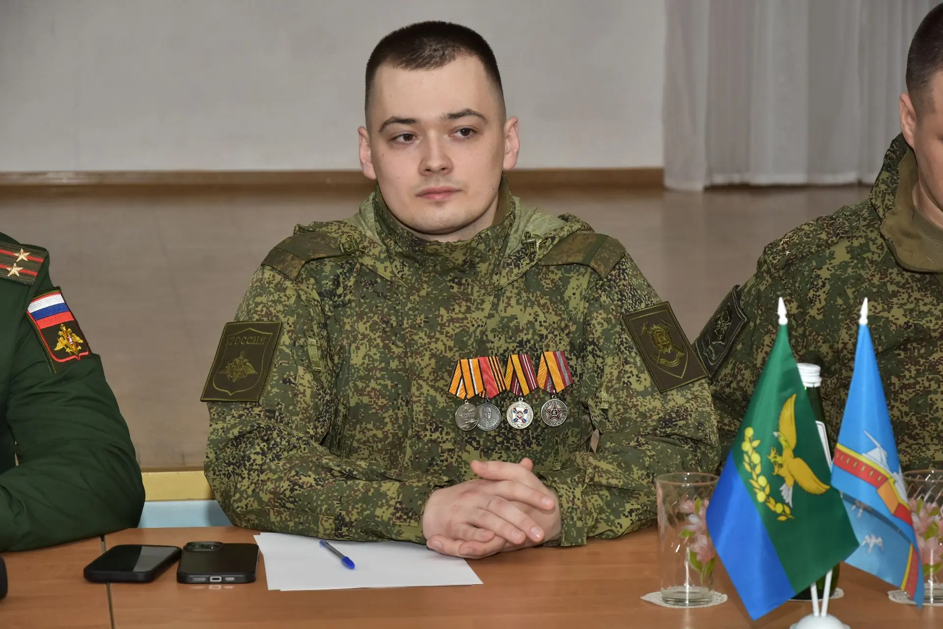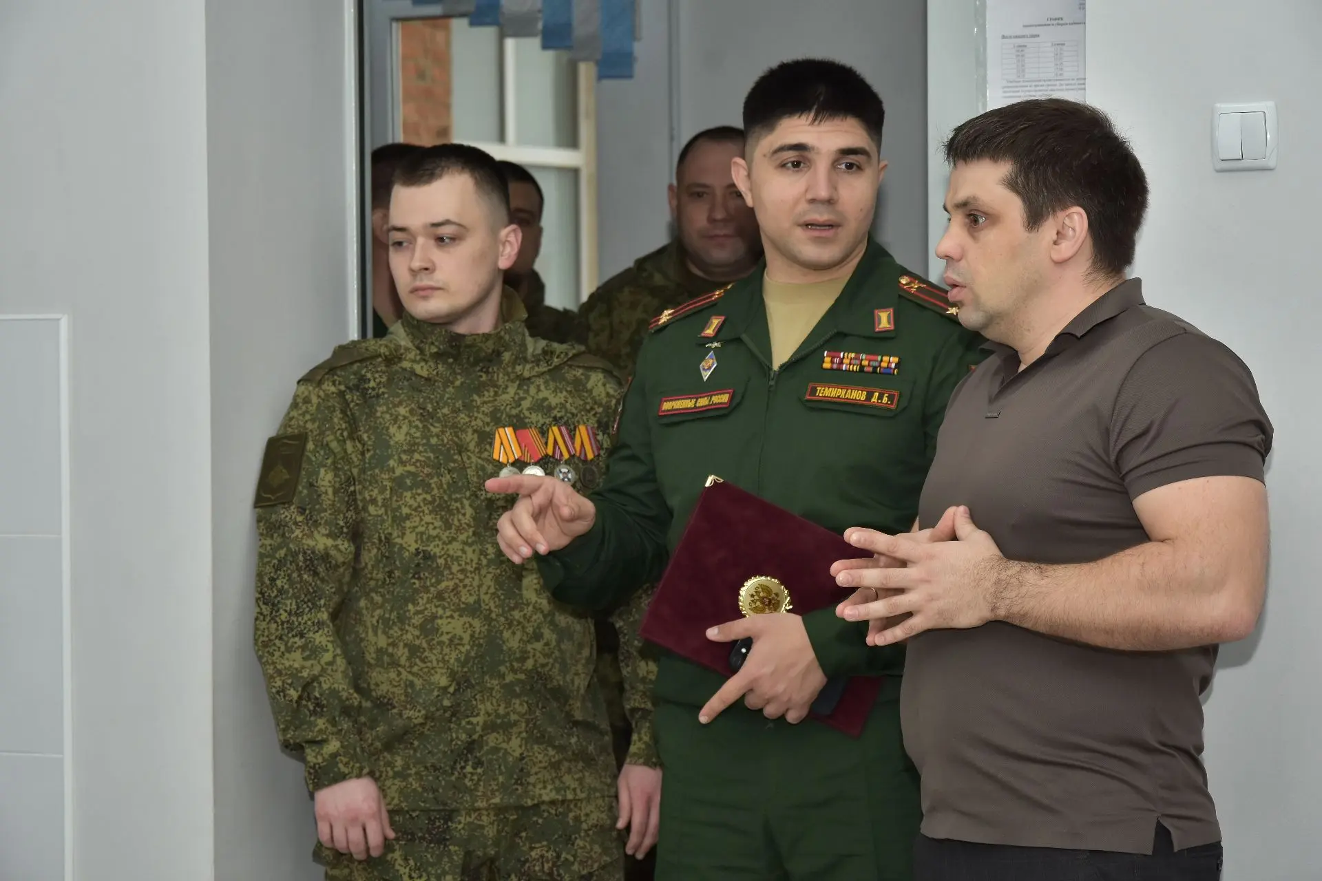 На торжественном мероприятии, состоявшемся в администрации Славянского района 25 февраля 2026 года, временно исполняющий обязанности заместителя командующего войсками Южного военного округа по военно-политической работе подполковник Дереник Темирханов и глава Славянского района Роман Синяговский вручили начальнику радиостанции взвода связи ремонтно-восстановительного батальона ефрейтору Артему Колмыкову медаль «За боевые отличия» за отвагу и самоотверженность, проявленные при выполнении задач в боевых условиях и при проведении специальных операций в условиях, сопряженных с риском для жизни.