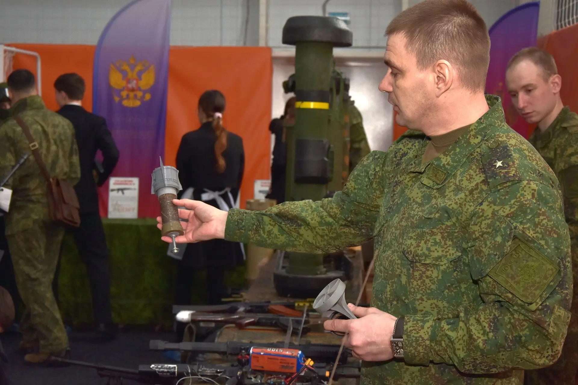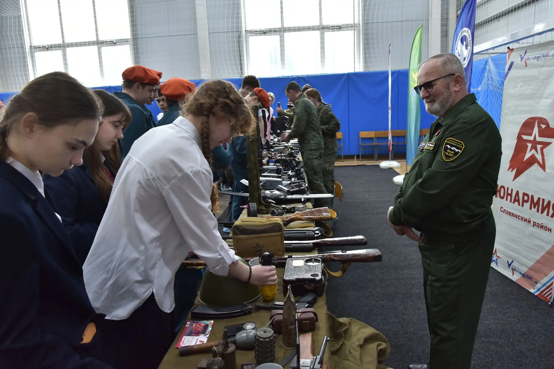 Особенно ценным было то, что экскурсоводами на выставке были не гражданские лица, а те военнослужащие, которые знают на практике, как применять оружие прежде всего для защиты своих боевых друзей, мирного населения, и ученые-историки, такие как Фуфалько Богдан Дмитриевич - историк-краевед, ветеран поискового движения, начальник штаба поискового отряда "Кубанский рубеж".