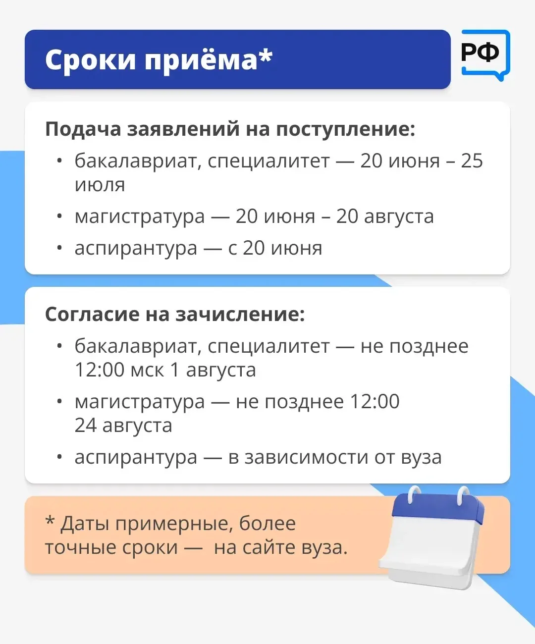 *Подробную информацию и точные сроки смотрите на сайтах кубанских вузов: