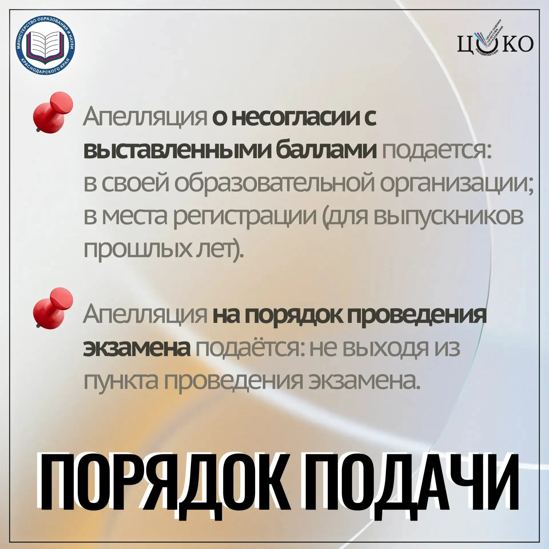 ❕ После ознакомления с результатами экзамена, если вы не согласны с выставленными баллами, подайте письменную апелляцию в школу в течение двух рабочих дней после официального ознакомления с ними.