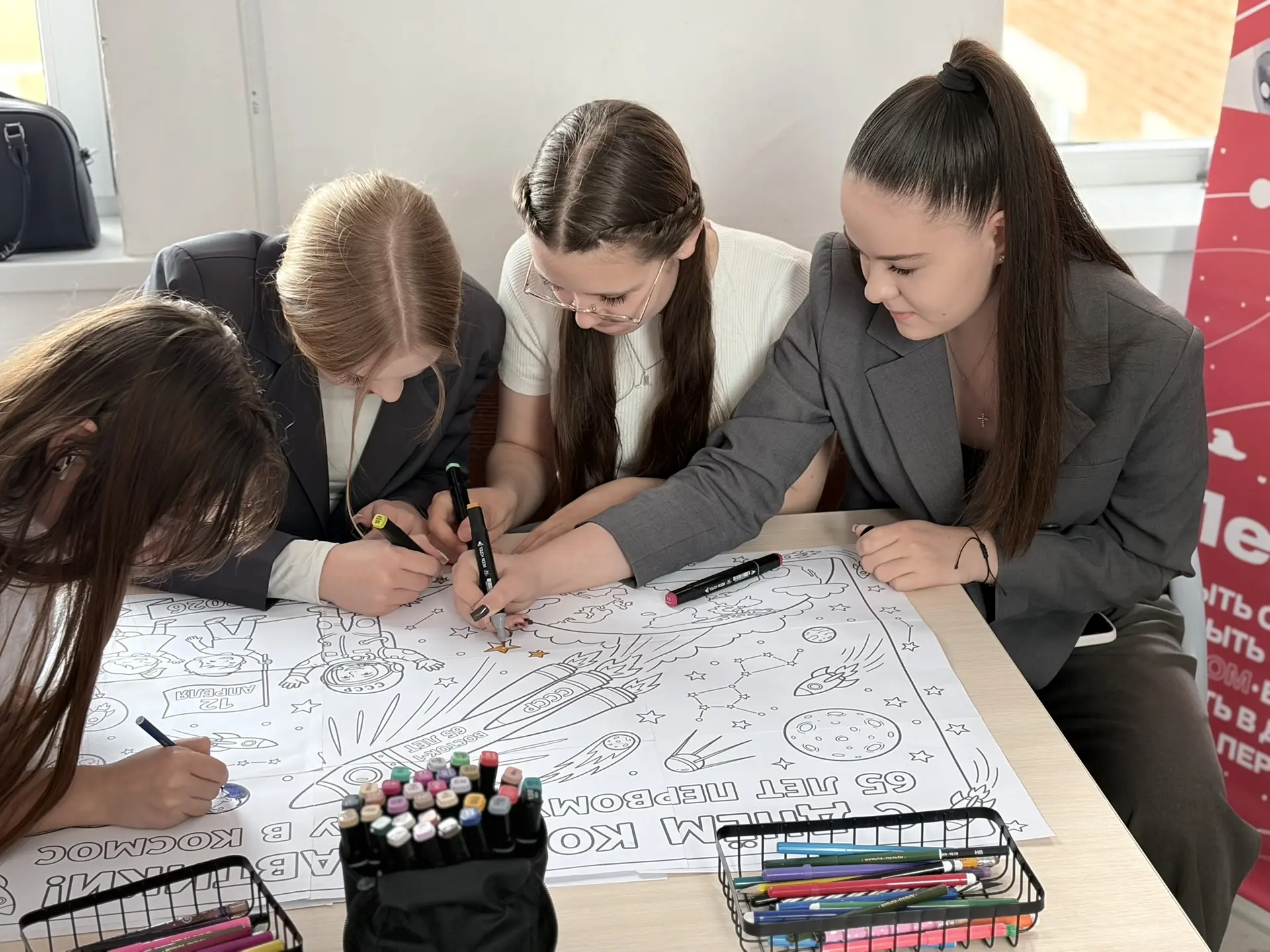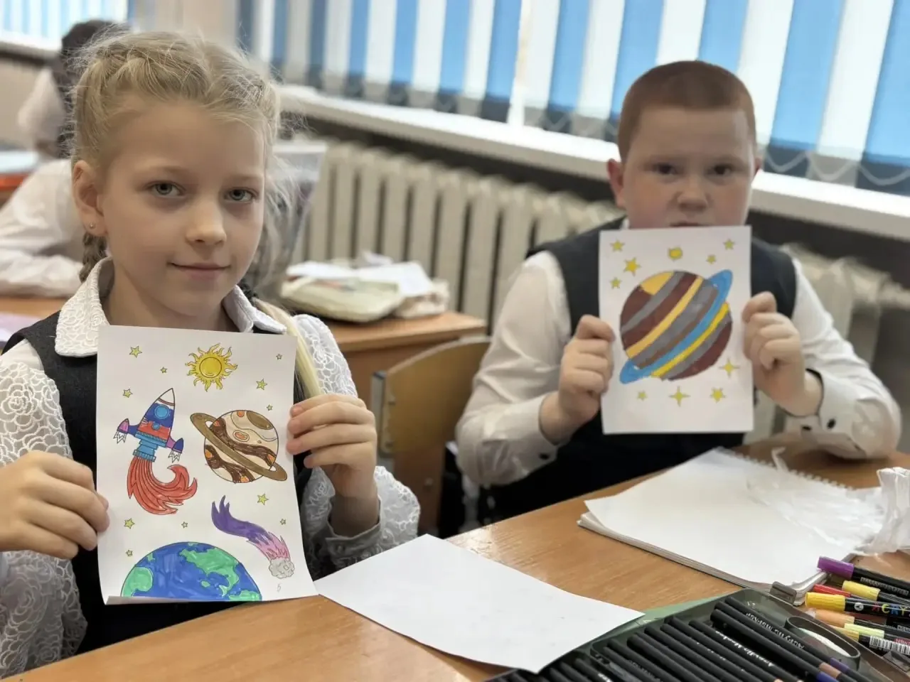 Творческие интерактивы. Юные художники объединили свои таланты, чтобы создать яркие работы на космическую тему. Ребята раскрашивали планеты, ракеты, созвездия и придумывали тематические заголовки. Получилось по‑настоящему красочно и оригинально!