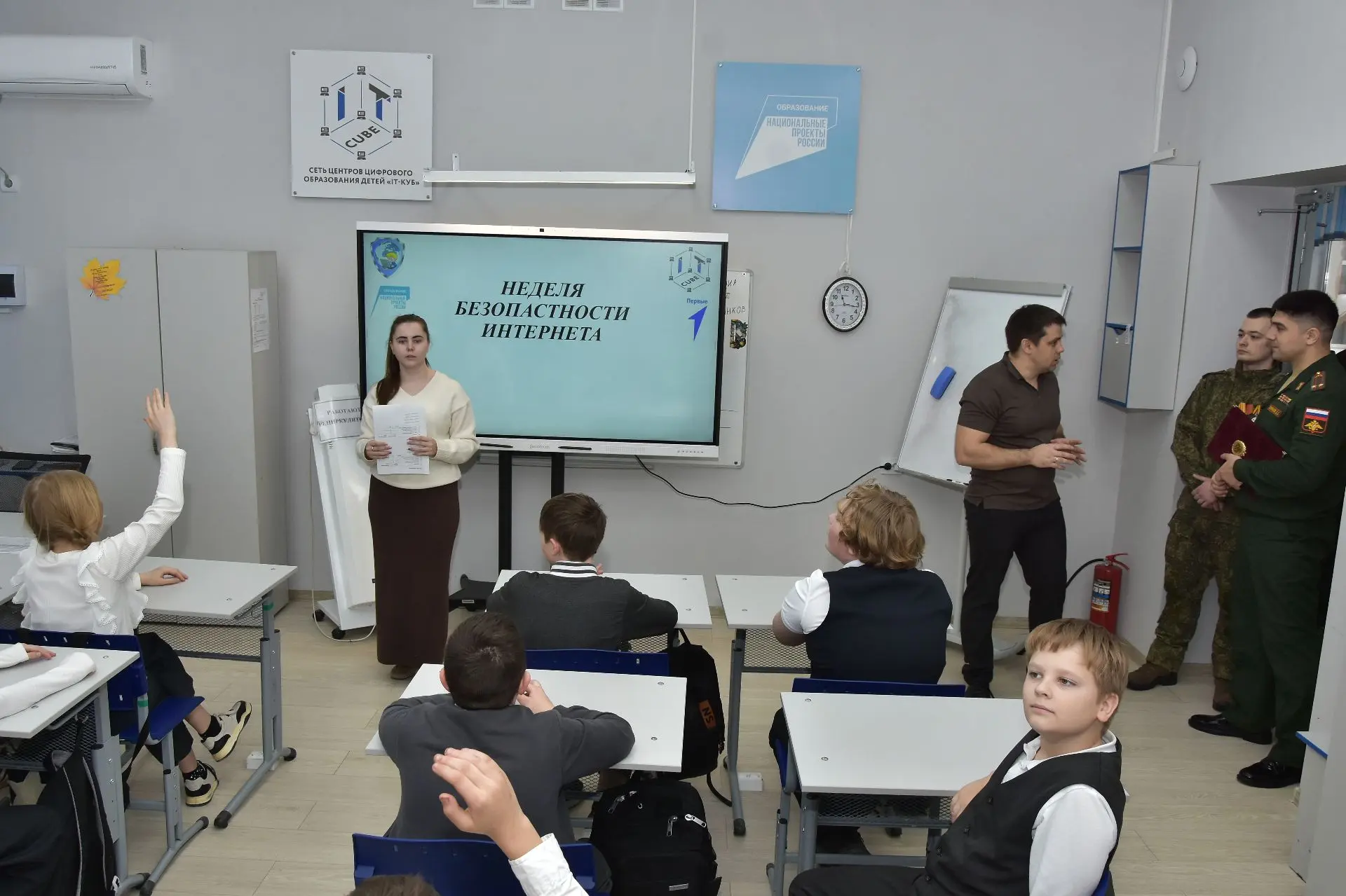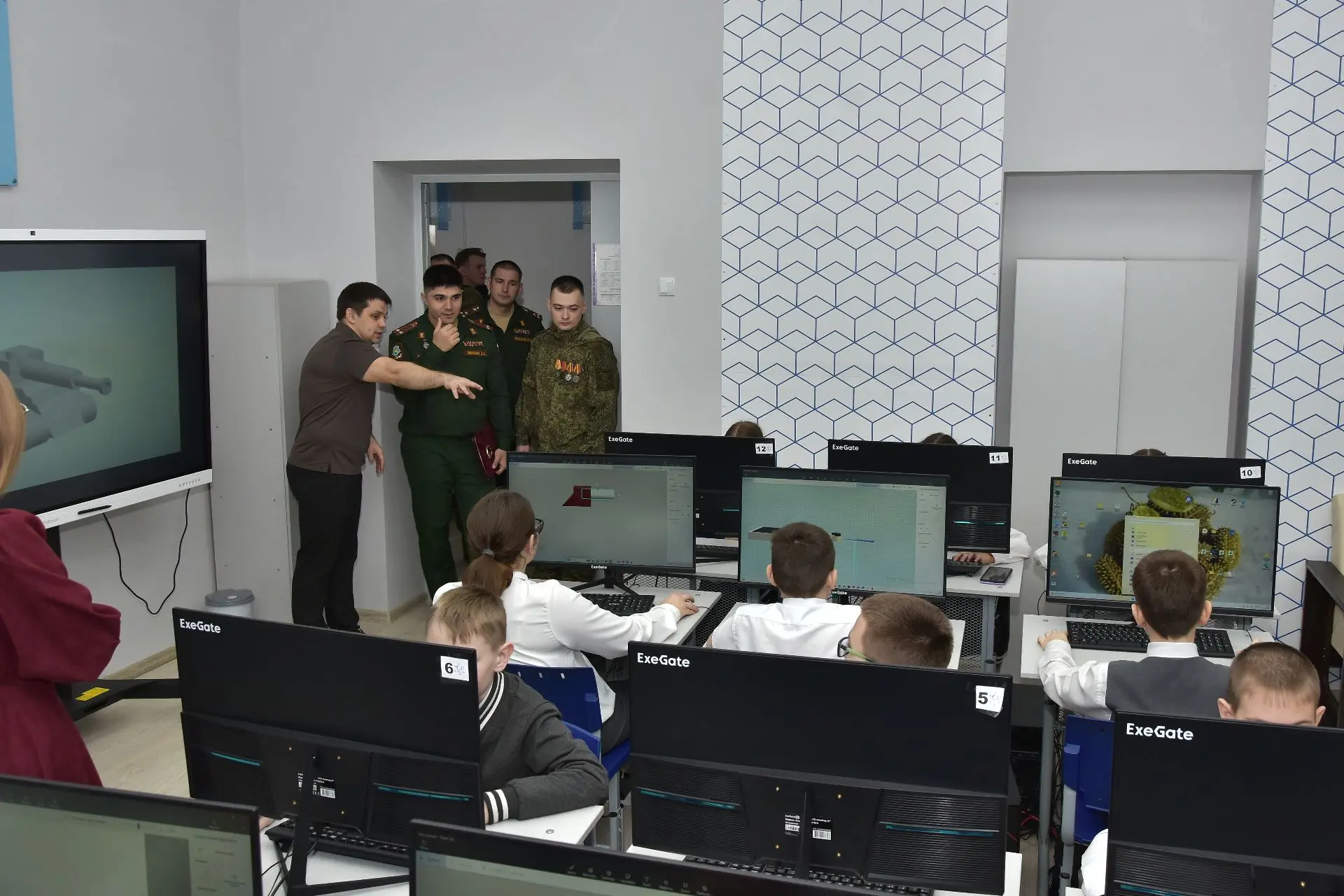Вместе с гостями мы отправились в увлекательное путешествие по нашей школе и заглянули сразу в два особенных места: современный лицейский Центр цифрового образования детей «IT‑куб» и историческую Галерею Славы лицея. Два мира, две эпохи — и оба они формируют лицо нашей школы.