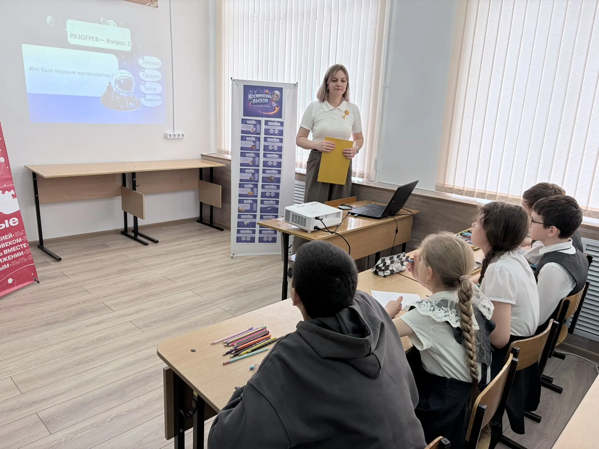 Викторина «Космический вызов». Учащиеся проверили свои знания в захватывающей интеллектуальной игре. Вопросы касались истории космонавтики, астрономии и научных открытий. Все участники проявили отличную эрудицию, а победители получили памятные сувениры!