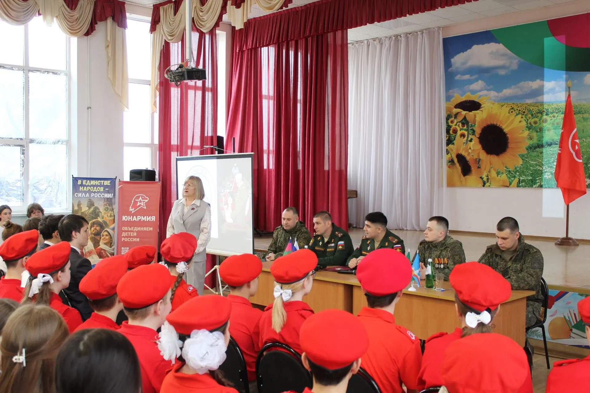 В центре внимания лицеистов в этот день– незабываемый Урок Мужества, который провел с учащимися исполняющий обязанности заместителя командующего Южным военным округом по военно-политической работе подполковник Дереник Борисович Темирханов. Общение с боевым офицером, командиром, который на деле знает, что такое солдатская честь и доблесть, мужество и героизм, воинское братство и взаимоподдержка, не только обогатило учащихся знаниями о героических поступках, но и вызвало чувство гордости за свой народ и уважение к тем, кто стоит на страже безопасности нашей Родины.