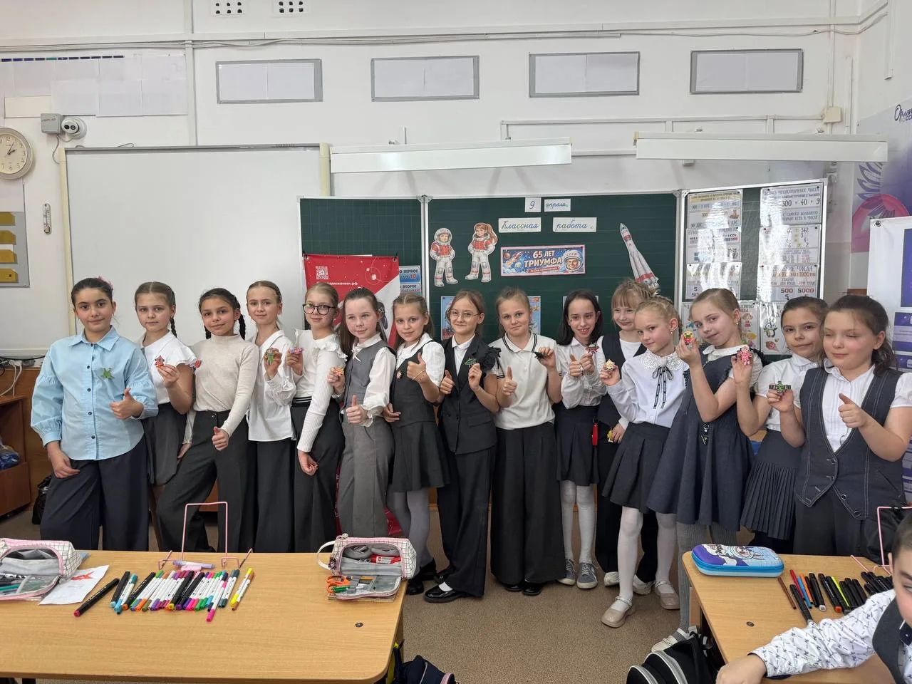 Мастер‑класс «Космический талисман». Каждый ученик, под четким руководством организаторов, создал свой уникальный талисман — тематический значок на космическую тему. Эти талисманы станут напоминанием о празднике и символом новых свершений!