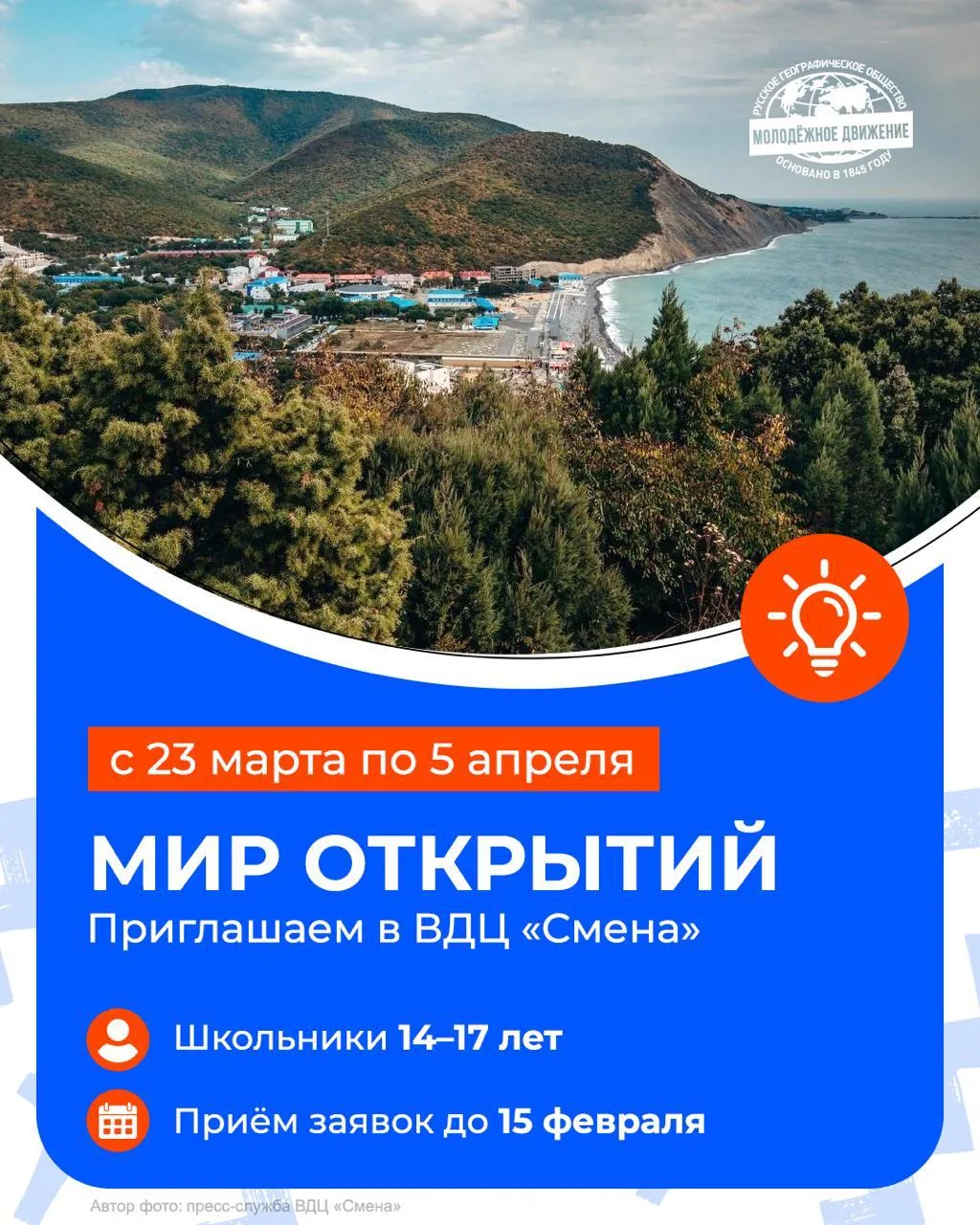 🎉Стартовал конкурс на участие в первой в этом году профильной смене РГО «Мир открытий»!