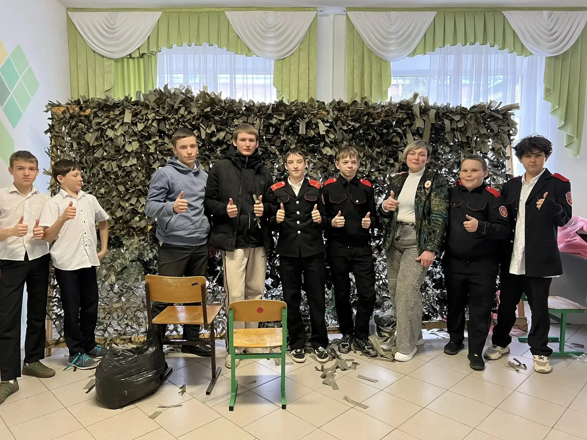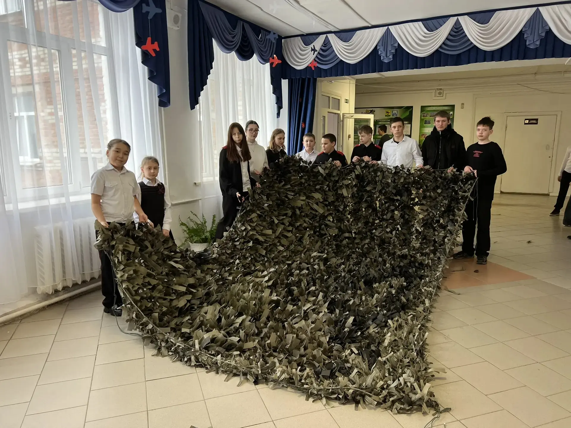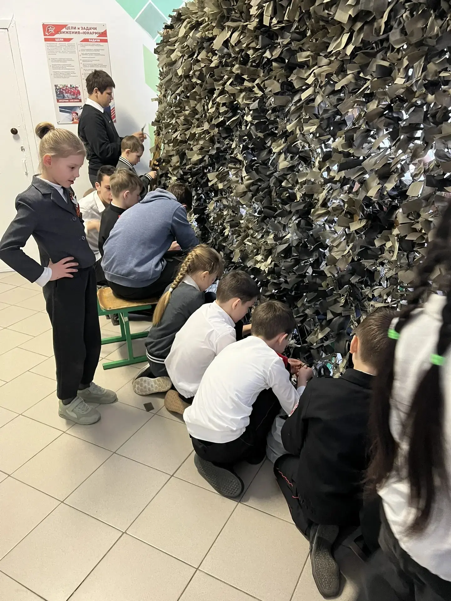 В школе ребята не просто завершили плести очередную маскировочную сеть, а сразу же начали плести новую! Потому что останавливаться нельзя — наши бойцы ждут.
