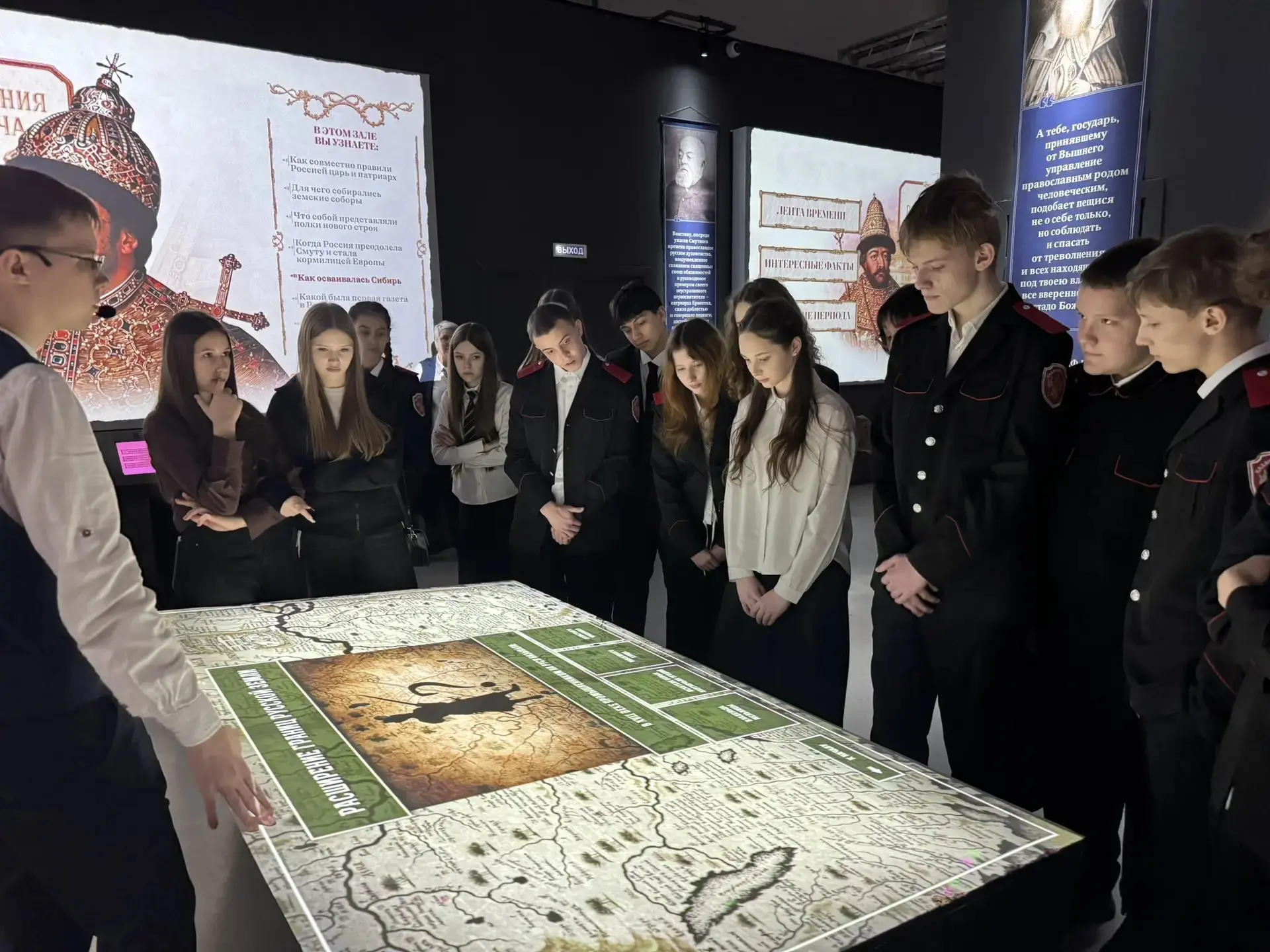 Это не просто хранилище древних артефактов, а настоящий исторический интерактивный парк, где история оживает с помощью высоких технологий. Здесь нет пыльных витрин и скучных стендов. Вместо них- огромные сенсорные витрины, проекции 3D- реконструкции и интерактивные столы. Ребята посетили выставку " Романовы: Погружение в эпоху". Она охватывает период с 1613 по 1917 год. Вместо скучного чтения - сенсорные панели в виде старинных фолиантов. Перелистывая страницы можно узнать детали об освоении Сибири или строительстве флота, а также поучаствовать в исторических викторинах. Для восьмиклассников этот период особенно важен, так как ребята уже начали изучать историю России Нового времени. Мероприятие прошло в рамках духовно-нравственного и патриотического воспитания обучающихся.