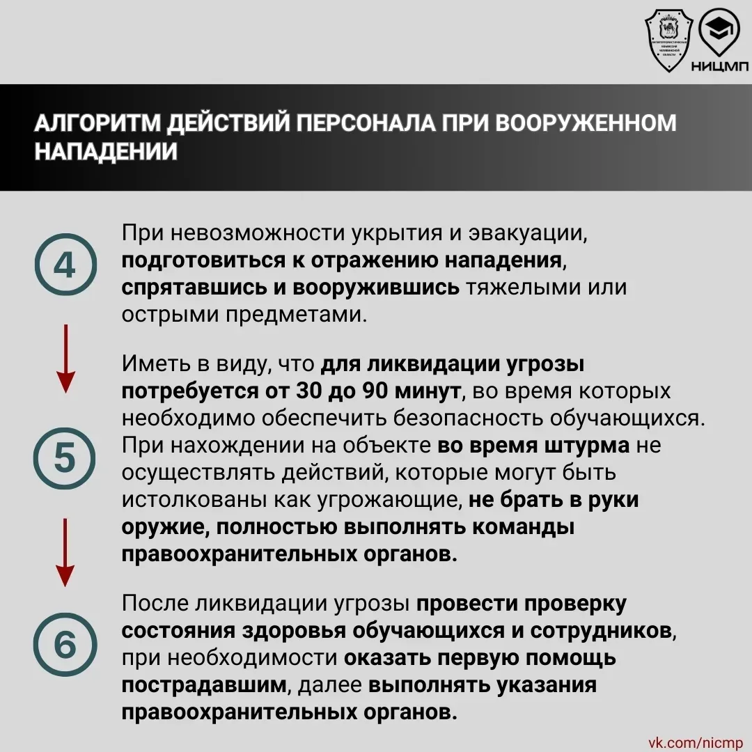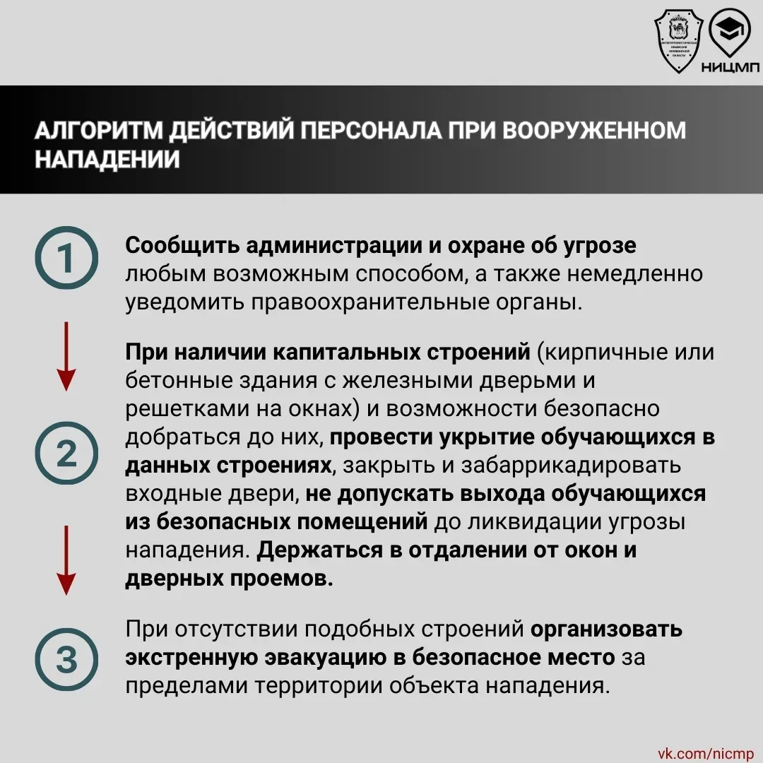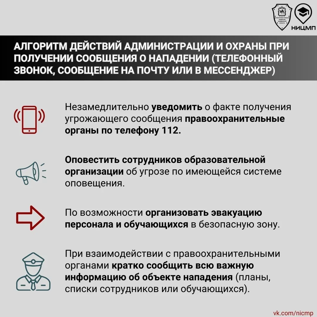 Призываем всех работников образовательных организаций и мест отдыха, обучающихся и сотрудников охраны ознакомиться с данными рекомендациями и следовать им в случае чрезвычайной ситуации🙏