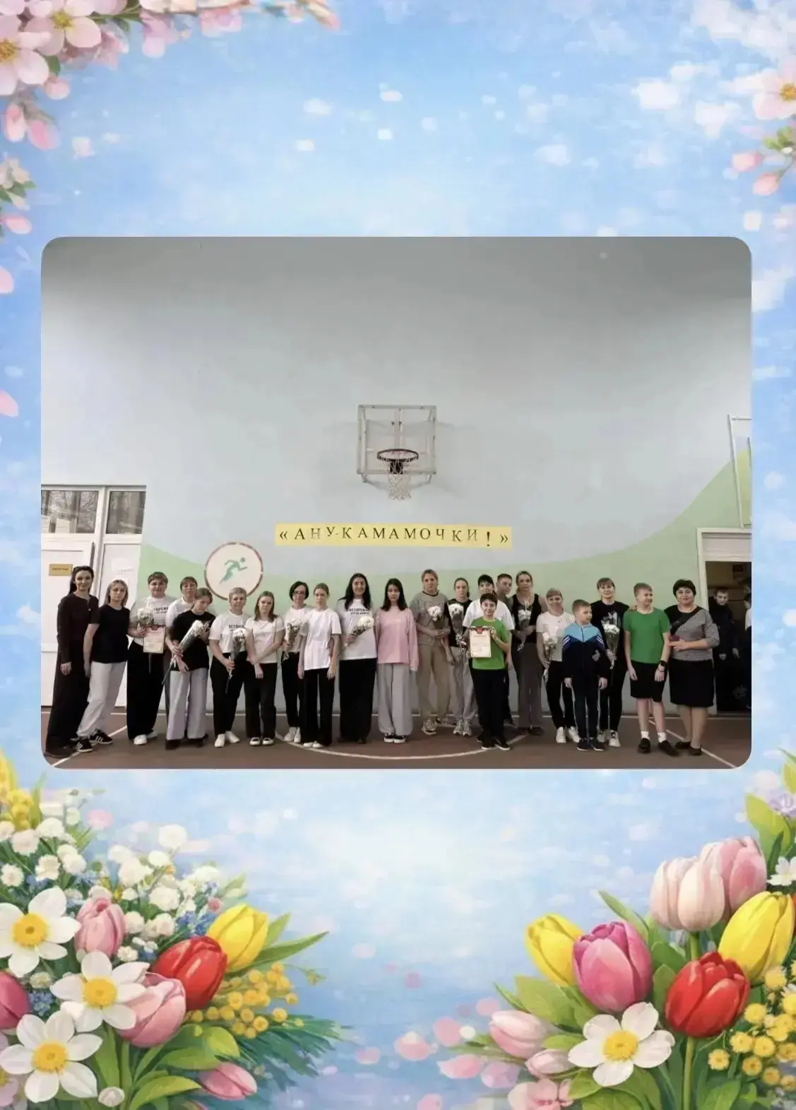 сборная команда мамочек и детей 8 «Б» класса «Крутые мамули» 💪и команда 5 «А» класса «Два сердца» 💕.