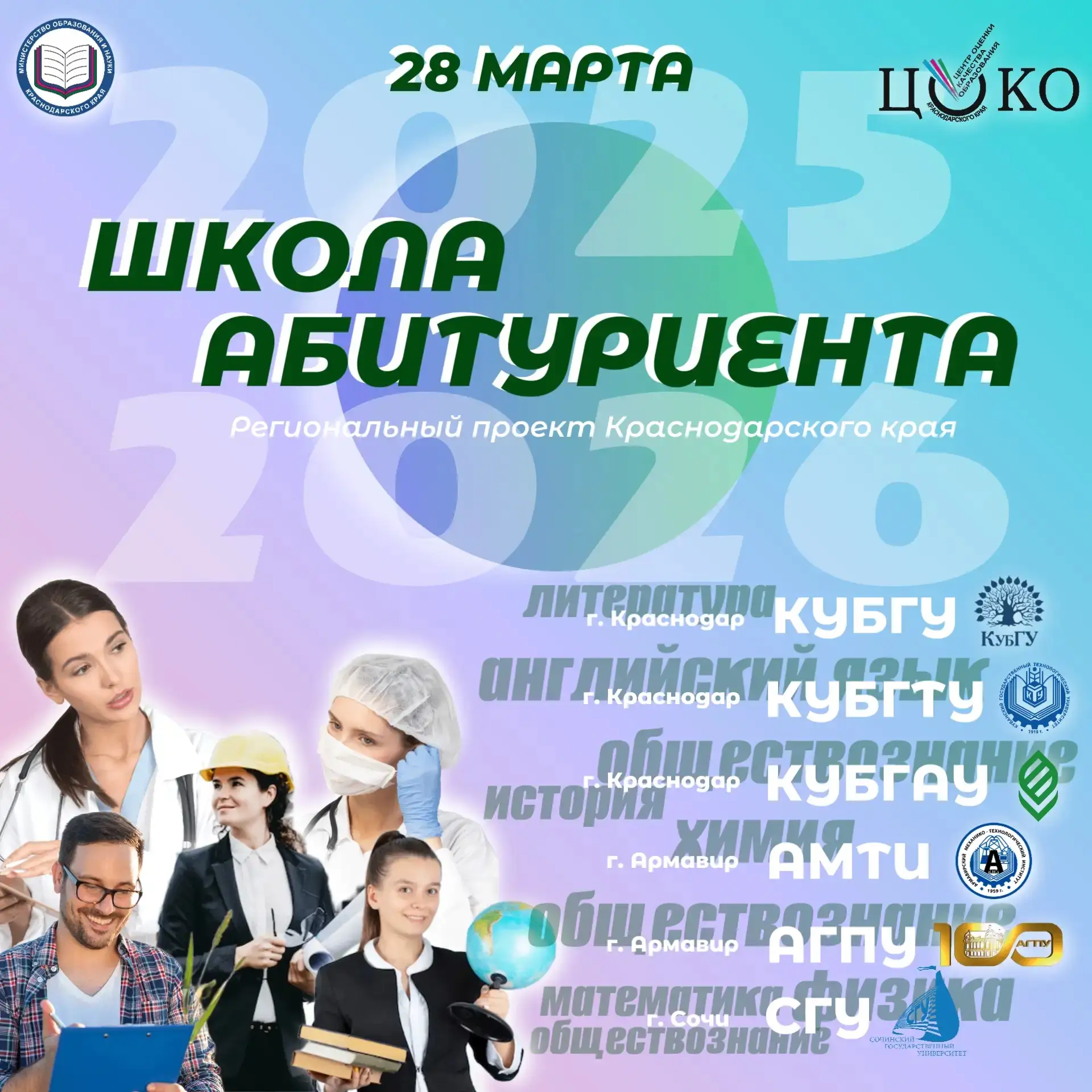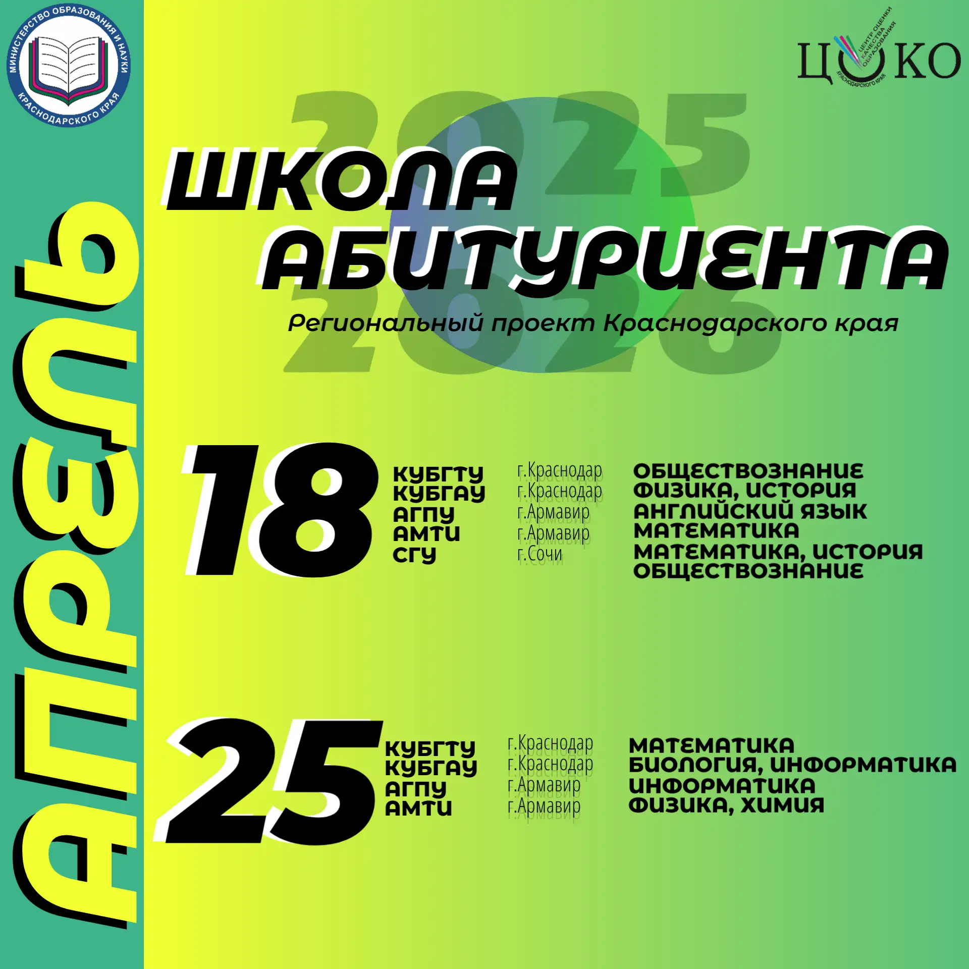 📌График семинаров в рамках регионального проекта Краснодарского края «Школа абитуриента» в апреле 2026 года.