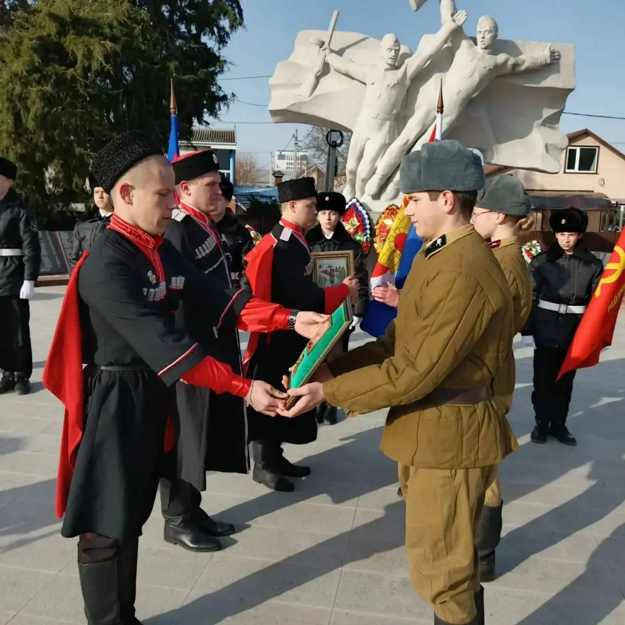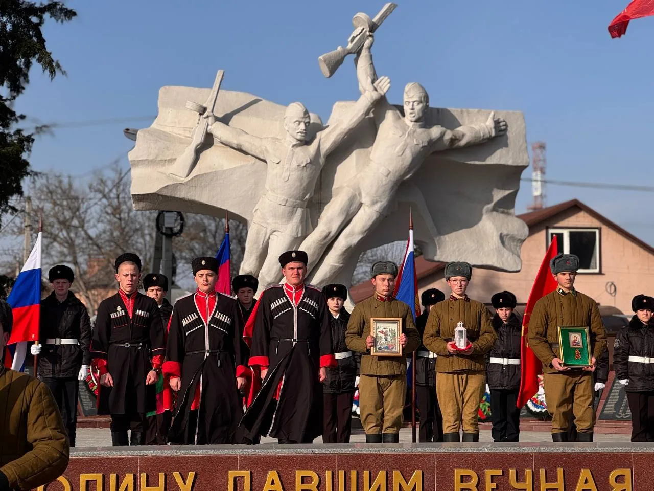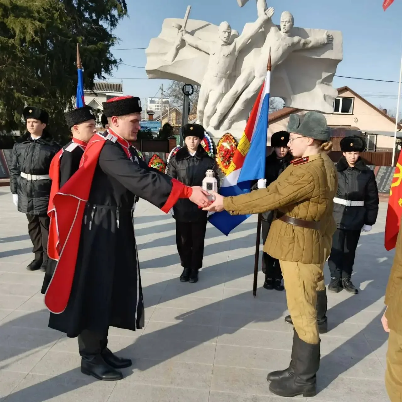 У мемориального комплекса «Вечный огонь» состоялся трогательный и значимый момент — очередной этап православно-патриотической эстафеты «Свеча Памяти». В этом важном событии приняли участие учащиеся МБОУ СОШ №1 имени А.В. Суворова.