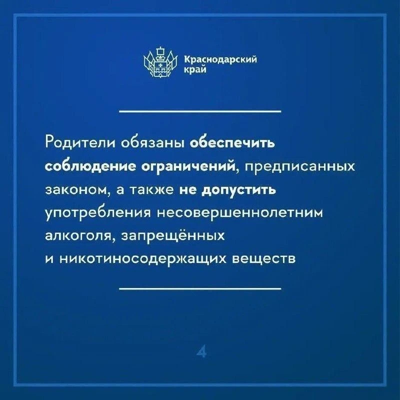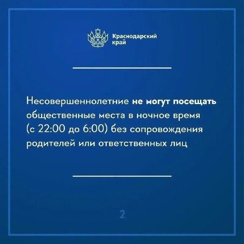 Напоминаем о требованиях закона Краснодарского края № 1539-КЗ «О мерах по профилактике безнадзорности и правонарушений несовершеннолетних в Краснодарском крае».