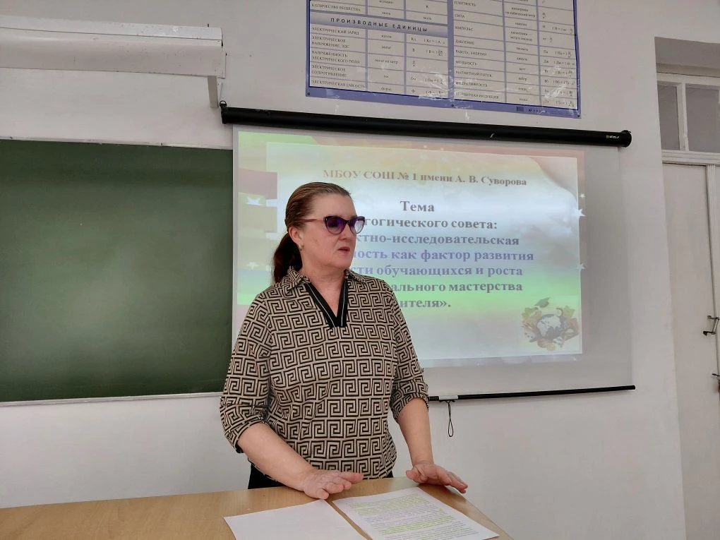 🎯 Сегодня в МБОУ СОШ №1 имени А.В. Суворова состоялся педагогический совет на тему: «Проектно-исследовательская деятельность как фактор развития личности обучающихся и роста профессионального мастерства учителя».