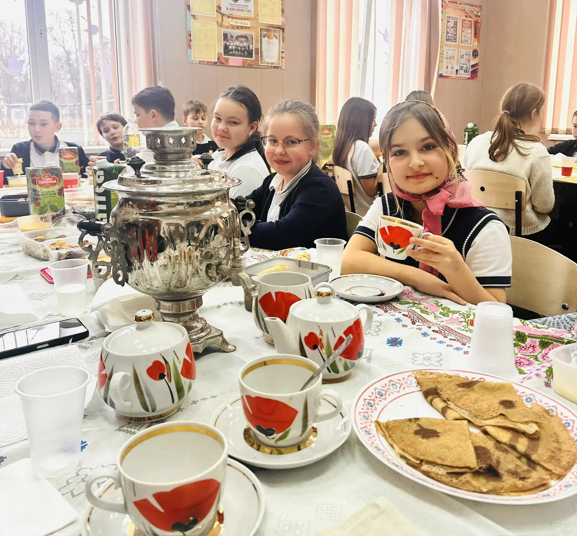 Главный символ праздника — ароматные, румяные блины, олицетворяющие собой солнечный круг жизни. Каждый блинчик был приготовлен с любовью и вниманием, даря гостям заряд позитива и тепла. А благодаря активной поддержке родителей, праздник стал настоящим кулинарным шедевром, наполнив класс ароматом домашнего уюта и семейного счастья.