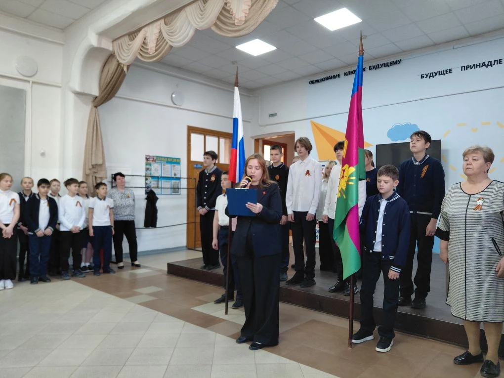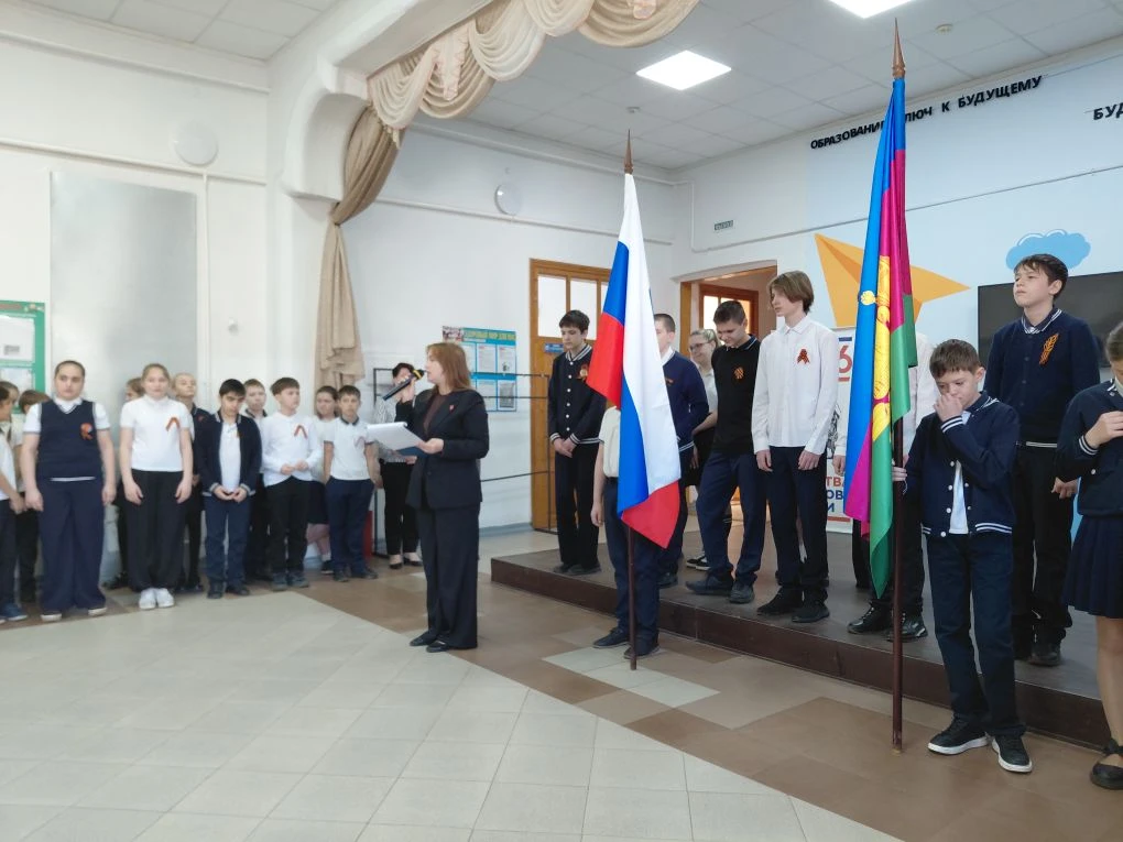 🎉 Сегодня в нашей школе прошла торжественная линейка с выносом Государственного Флага Российской Федерации и флага Краснодарского края. На мероприятии были подведены итоги важных событий и награждены лучшие ученики.