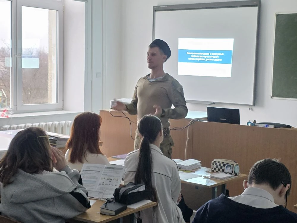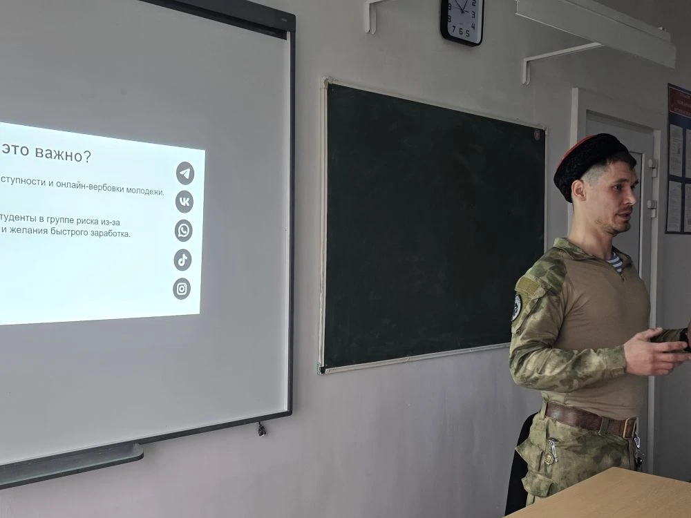🇷🇺🇷🇺🇷🇺Сегодня МБОУ СОШ №20 посетил руководитель Союза казачьей молодёжи Алексéев Николай Вячеславович. Он провёл беседу со старшеклассниками на актуальную тему — профилактику экстремизма и защиту от вербовки, призвал ребят к патриотической деятельности. Как участник СВО, Алексéев Николай ответил на многочисленные вопросы об особенностях службы. Встреча вызвала живой интерес у учеников.