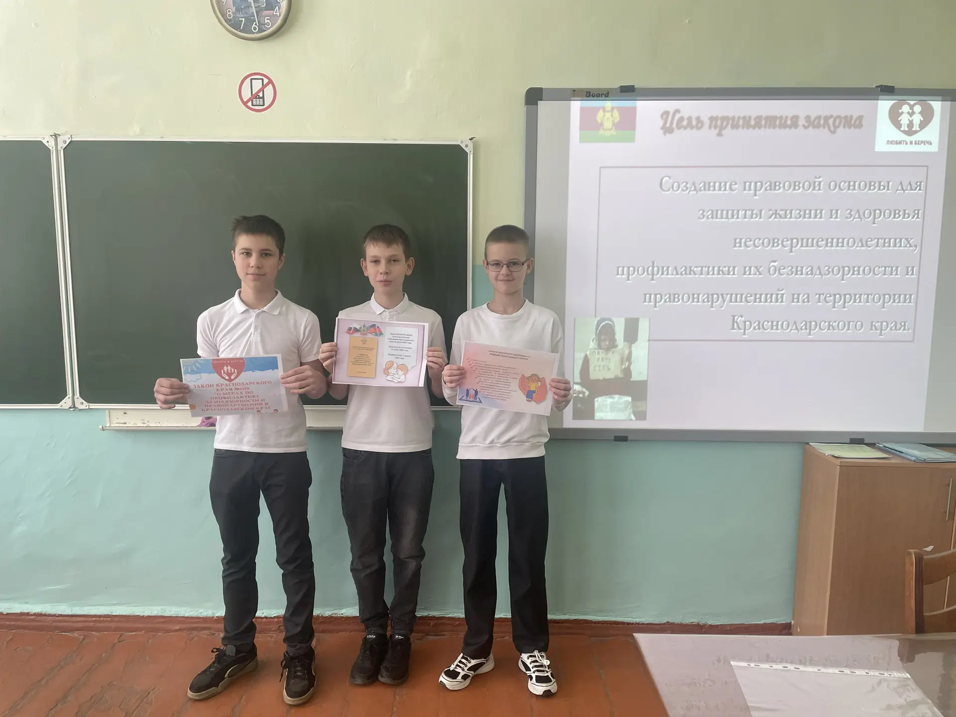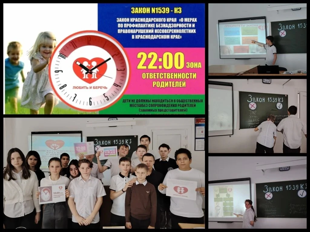 В 7Б классе прошёл информационный час посвящённый Закону КК от 21.07.2008г №1539-КЗ "О мерах по профилактике безнадзорности и правонарушений несовершеннолетних в Краснодарском крае".