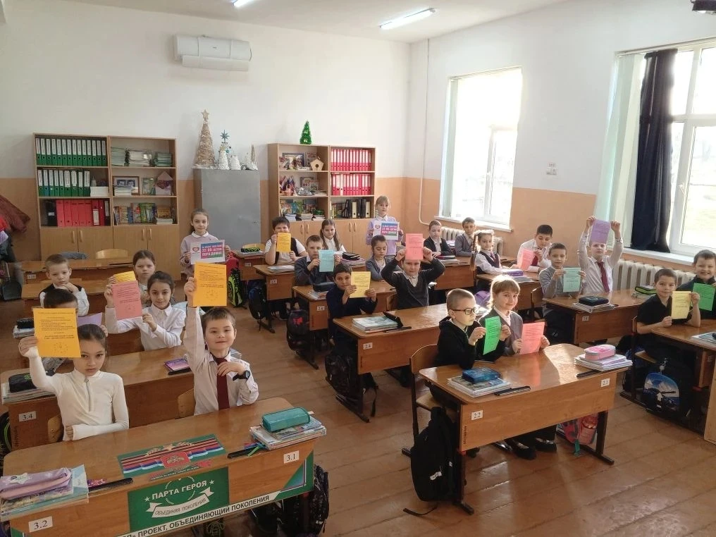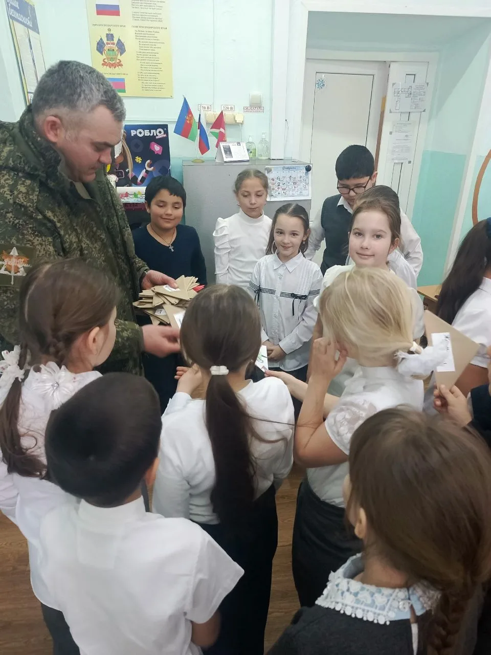 В письмах ✉️они тепло поздравляли наших дорогих бойцов с приближающимся праздником 23 февраля и желали скорейшего возвращения💪 с Победой домой🇷🇺Ребята передали письма и приветы от самых маленьких учеников 1а класса.