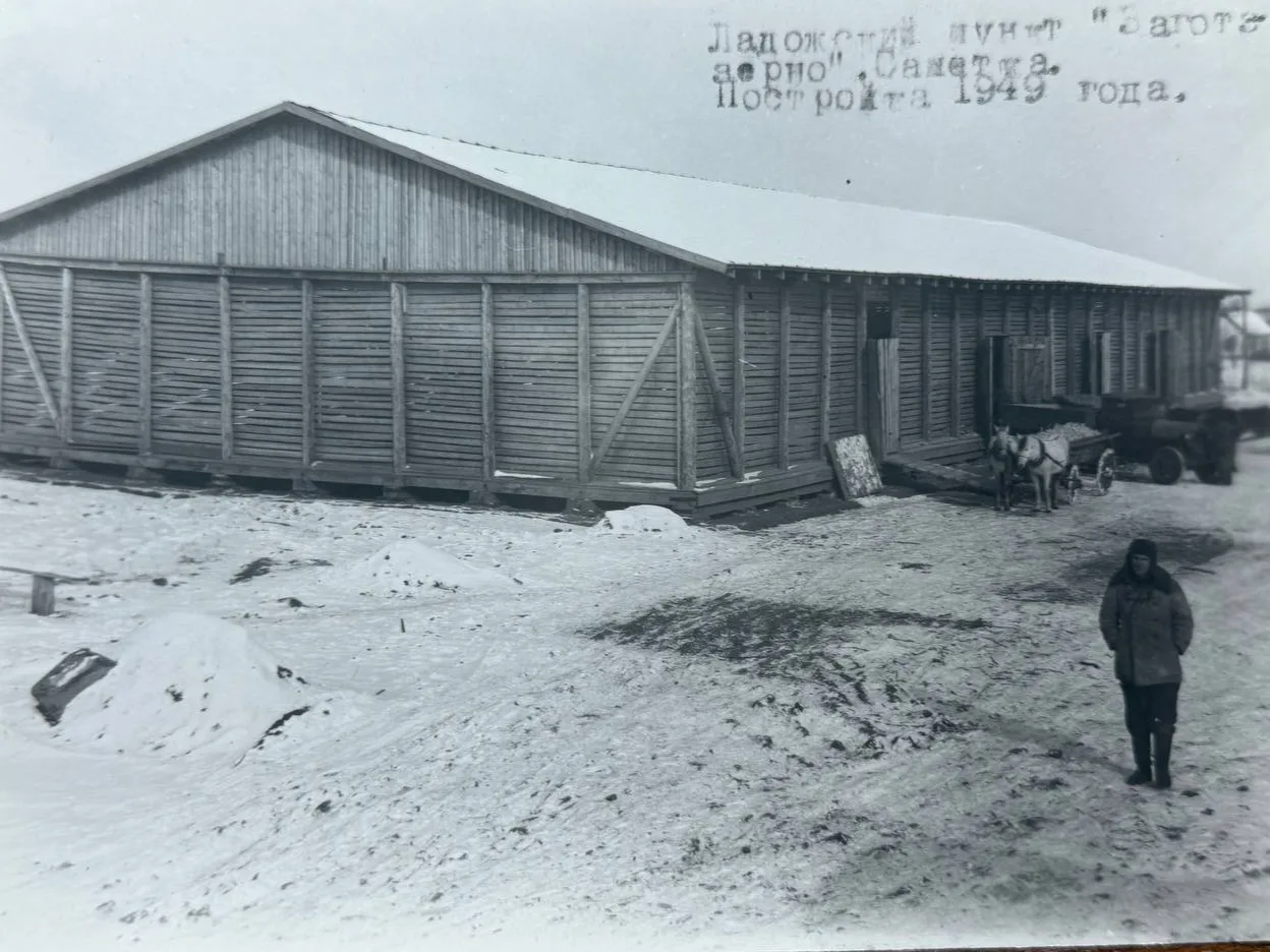 «Даже в самые тяжелые дни Великой Отечественной войны Ладожский элеватор оставался важнейшим пунктом приема хлеба. Именно здесь трудились сотни наших земляков, снабжая фронт и тыл жизненно необходимыми запасами. В военные годы элеватор получил новое название — 'Ладожский хлебоприемный пункт', став настоящим символом стойкости и мужества местных жителей. Стены элеватора хранят память о тех временах, когда каждый мешок зерна был дорогого стоил и помогал выжить людям в условиях жестокой борьбы.»