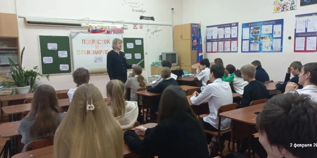 Сегодня, 2 февраля 2026 года, в 8" А" классе прошёл тематический классный час, организованный социальным педагогом - Лукьянченко Ольгой Юрьевной. Мероприятие было посвящено актуальной теме - профилактике правонарушений среди подростков.