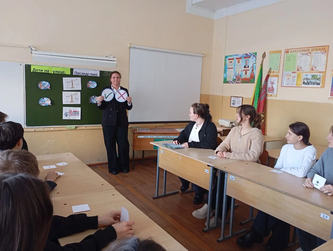Во время классного часа ребята в очередной раз услышали о важности соблюдения законов и норм поведения в обществе. В ходе беседы ученикам были приведены конкретные примеры из реальной жизни, демонстрирующие последствия нарушений закона и социальных норм, а так же статистика роста преступлений среди подростков и молодёжи.