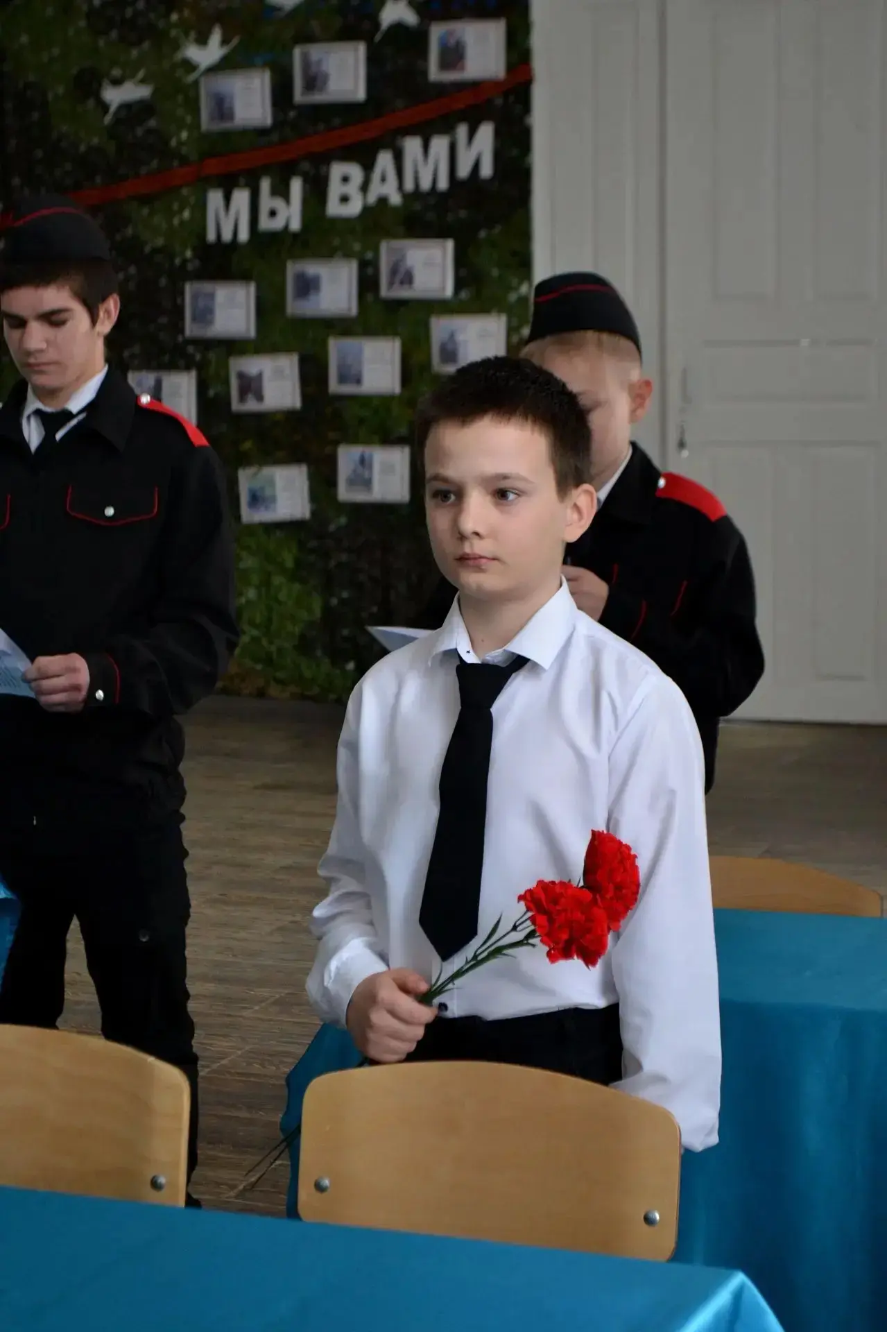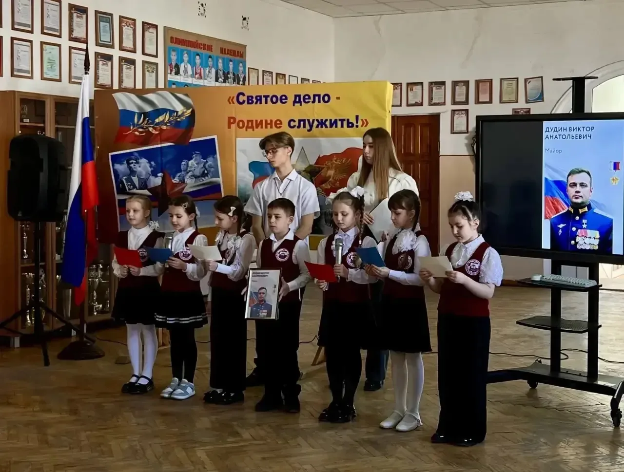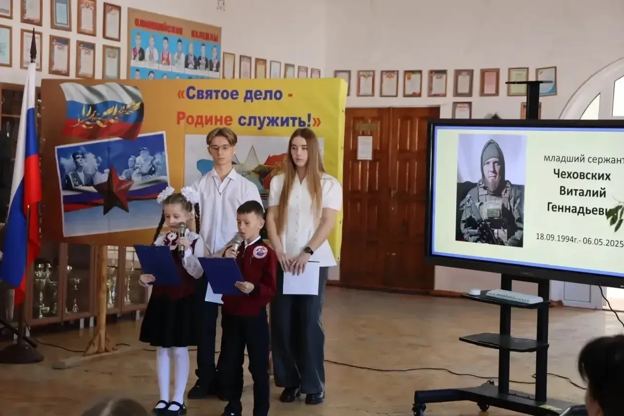 В преддверии Дня защитника Отечества в МБОУ ООШ №8 состоялось торжественное мероприятие, посвященное открытию "Парты Героя" в честь погибших выпускников школы, участников СВО В. Никиткина, В. Макарова, Б. Эльсаева, С. Белокунова, П. Капицына.