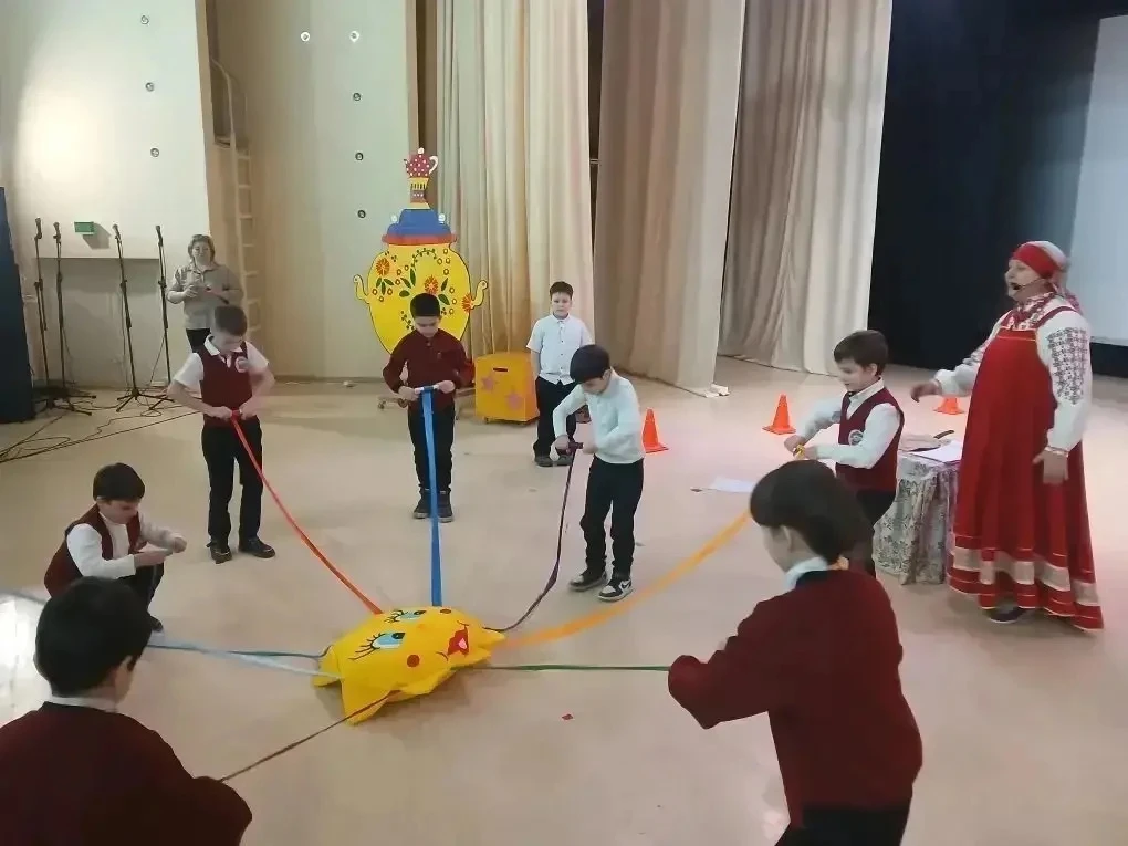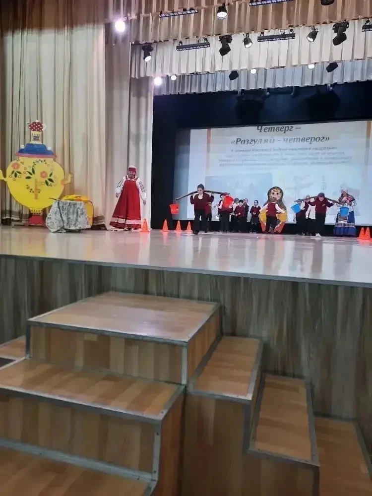 18 февраля 2026 года в ДК "Юбилей" для учащихся 2-х классов МАОУ СОШ № 4 им. Я. Ф. Шапошникова, А. Г. Стрюкова прошло мероприятие «Русская, старинная, румяная да блинная».