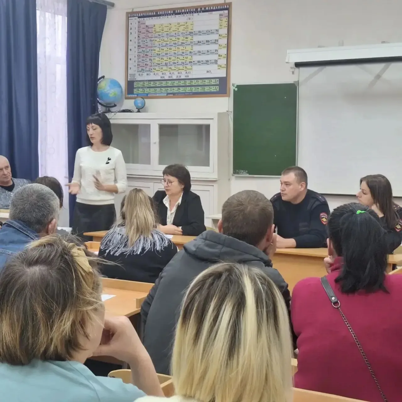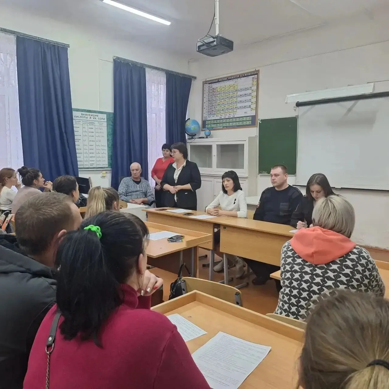 18.02.2026 года в казачьей школе №7 ст. Убеженской состоялось общешкольное родительское собрание. В самом начале мероприятия директор школы Беленко С. М. обозначила круг вопросов, которые необходимо рассмотреть на собрании, акцентировав внимание на проблемы, касающиеся современных подростков. "О взаимоотношениях с ребёнком в семье и о суицидальной ситуации в среде несовершеннолетних" рассказала Акименко Э О., педагог-психолог Успенского техникума. "О дропперах и дропперстве" сообщил родителям инспектор ОПДН Воблый О. Ю. "О безопасности на дорогах" говорила Елисеева Т.Г, инспектор Госавтоинспекции Успенского района. Кроме этого состоялся просмотр и обсуждение фильма Андрея Медведева "Предательство".