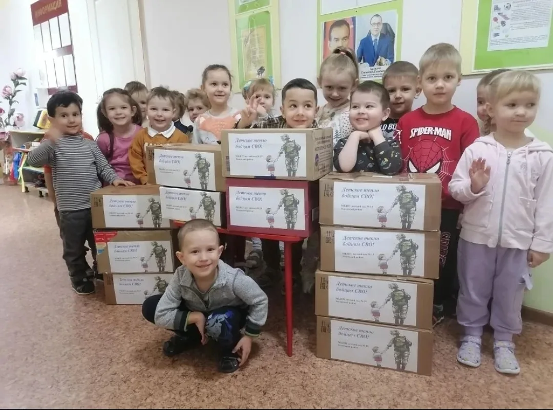 Воспитанники, их родители и сотрудники детского сада N19 приняли участие в акции "Мы вместе" по сбору гуманитарной помощи участникам СВО, целью которой было выразить поддержку российским военным, участвующим в спецоперации и показать единство граждан. Коллектив ДОУ вместе с семьями воспитанников собрали продукты, умывальные принадлежности и медикаменты.