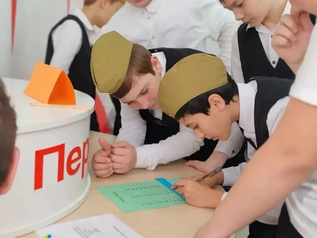 Почетное право первыми сесть за Парту Героя было предоставлено лучшим ученикам школы.