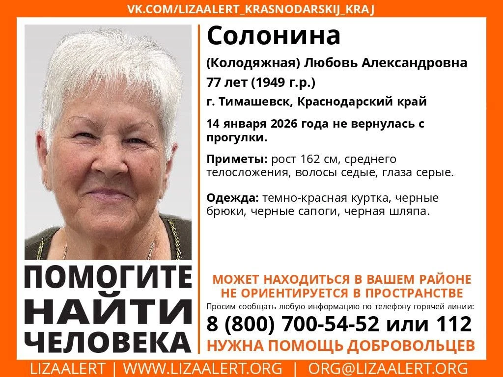 #Пропала#Солонина (Колодяжная) Любовь Александровна , 77 лет (1949 г.р.)