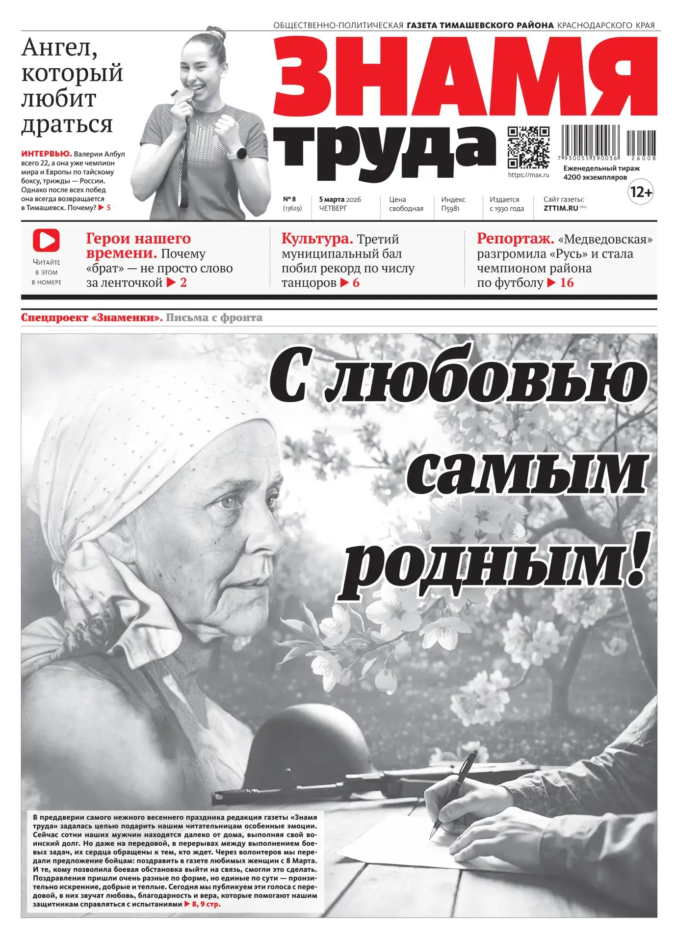 Зачем газета на передовой? Чтобы наши бойцы знали: их малая родина живет, трудится и ждет их. Чтобы, листая знакомые страницы, они чувствовали, что тимашевцы всегда рядом — мыслями и сердцем, и ждут ребят домой с победой!