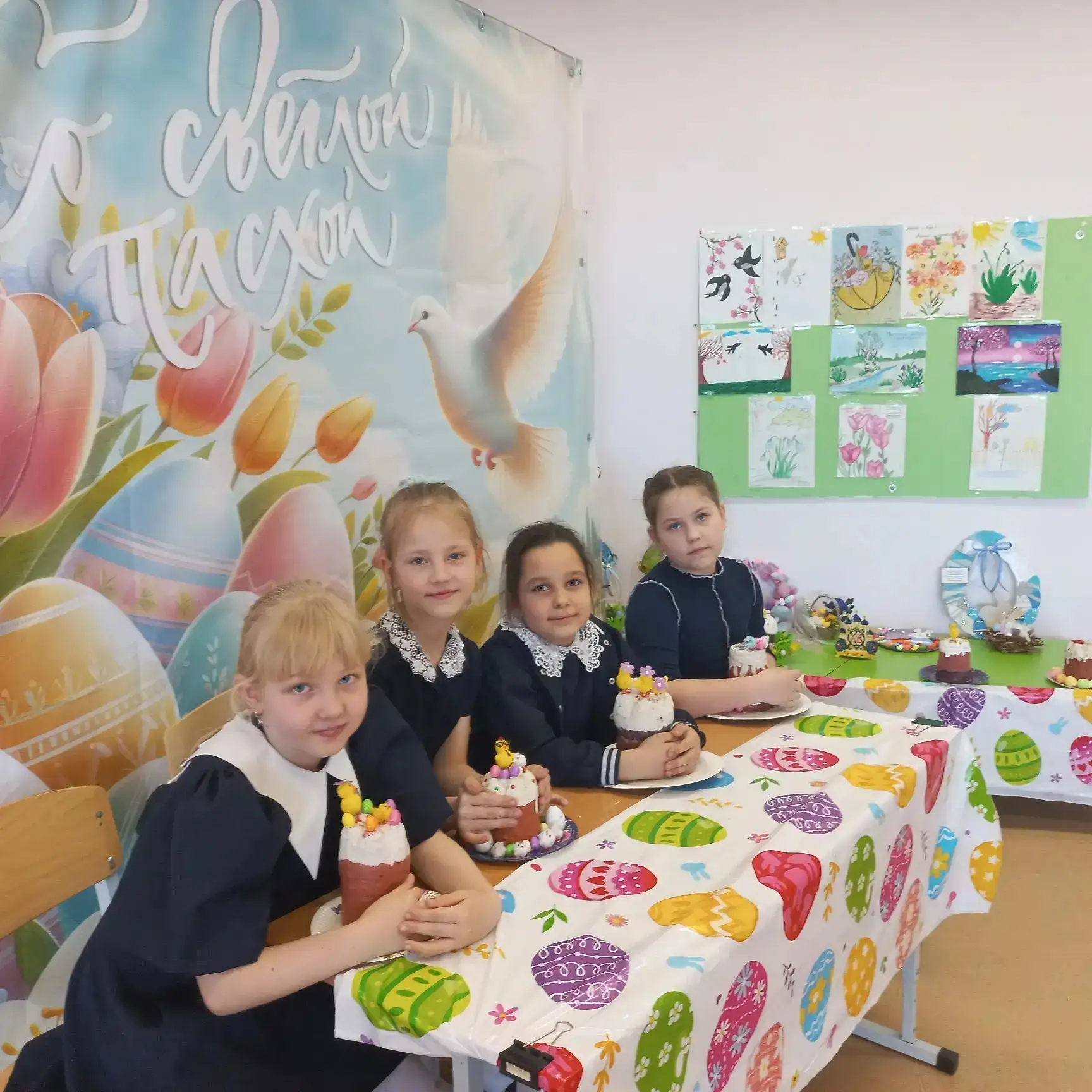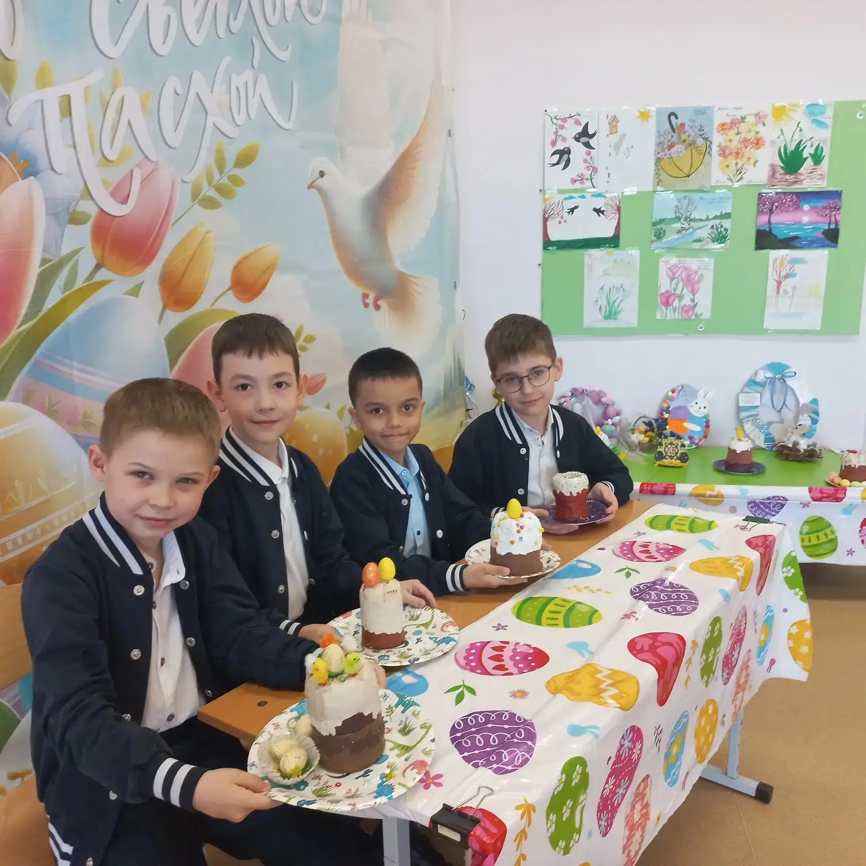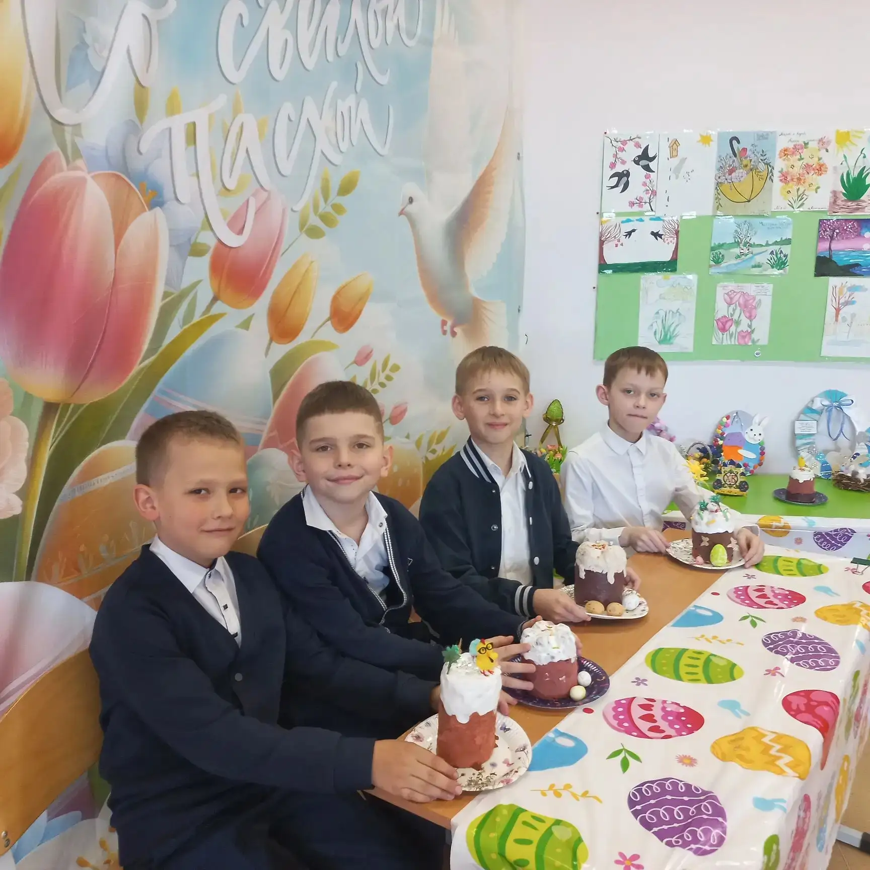 В нашем классе 2Д прошёл замечательный урок труда, на котором мы «напекли» бумажные куличи 🤗🤩😍. Каждый ученик проявил фантазию и старание, создавая свои уникальные изделия. Мы украсили класс к Пасхе, наполнив его атмосферой праздника и весеннего настроения.