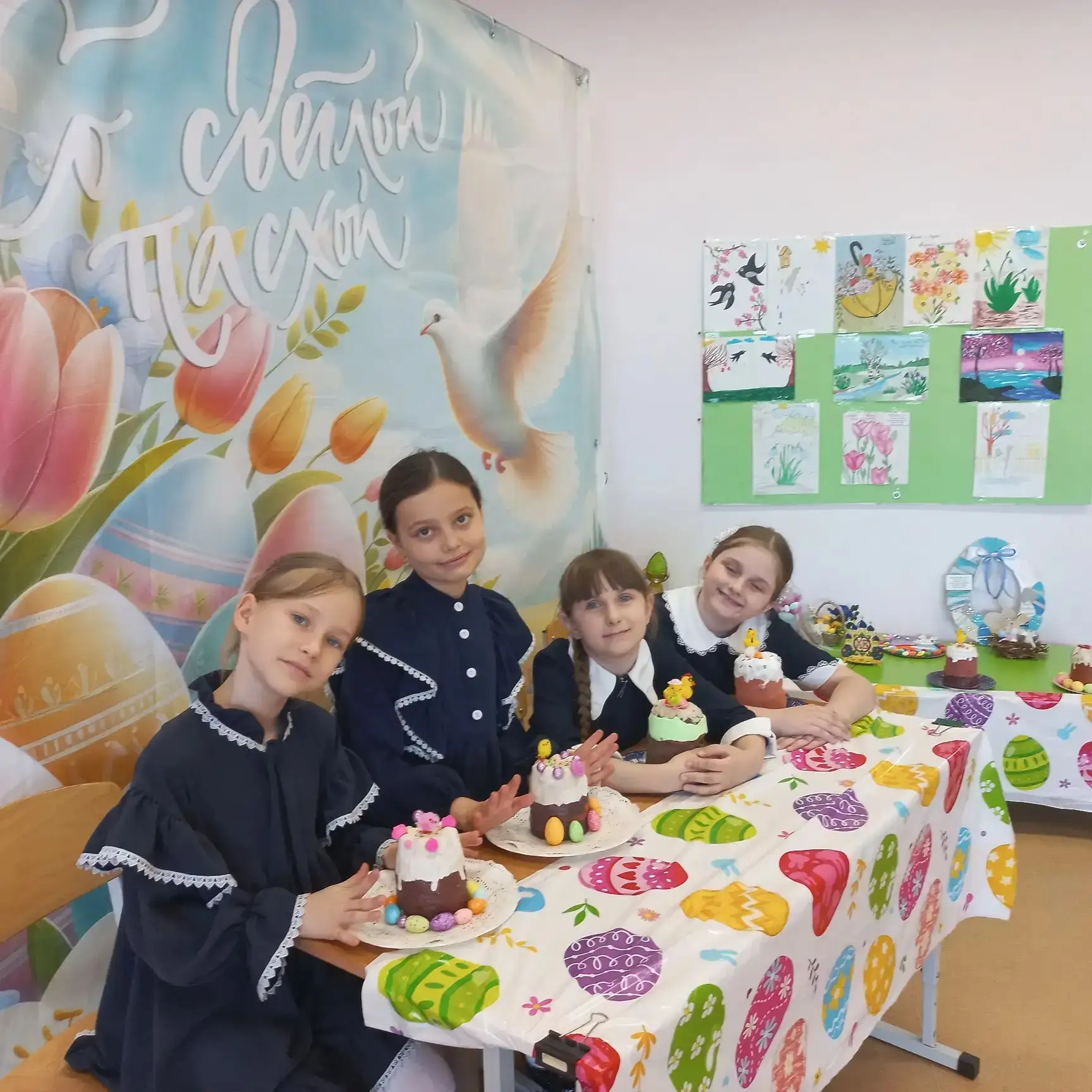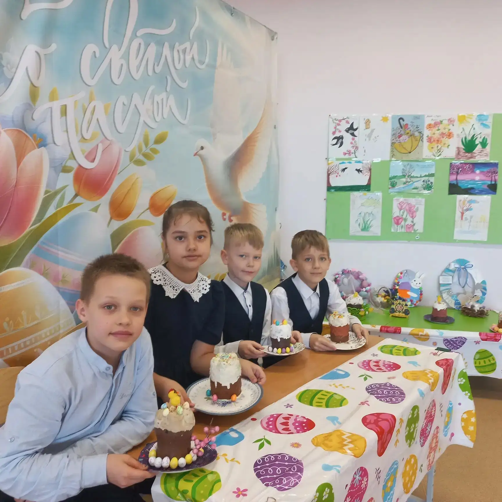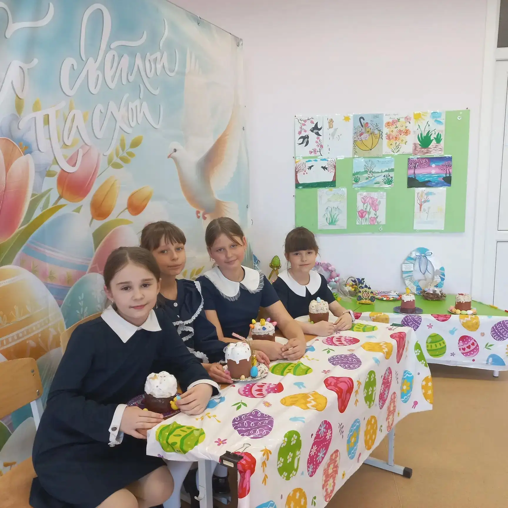 В нашем классе 2Д прошёл замечательный урок труда, на котором мы «напекли» бумажные куличи 🤗🤩😍. Каждый ученик проявил фантазию и старание, создавая свои уникальные изделия. Мы украсили класс к Пасхе, наполнив его атмосферой праздника и весеннего настроения.