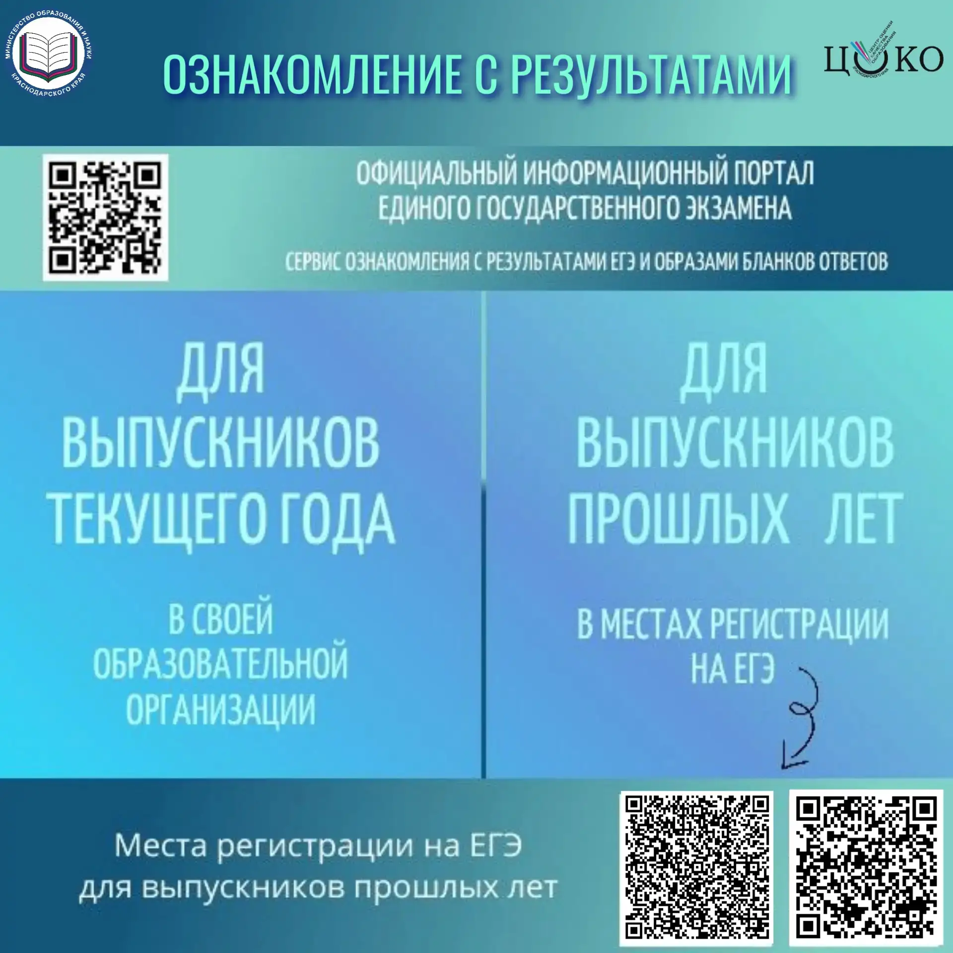 выпускники текущего года смогут ознакомиться с результатами экзаменов под подпись в своей образовательной организации, в которую подавали заявление на участие в ЕГЭ;