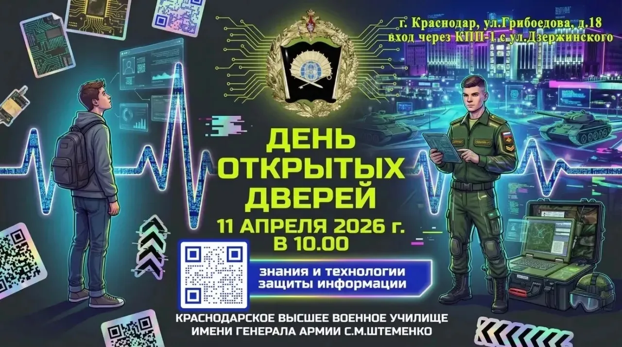 11 апреля 2026 года с 10 часов Краснодарское высшее военное училище имени генерала армии С.М.Штеменко проводит День открытых дверей.