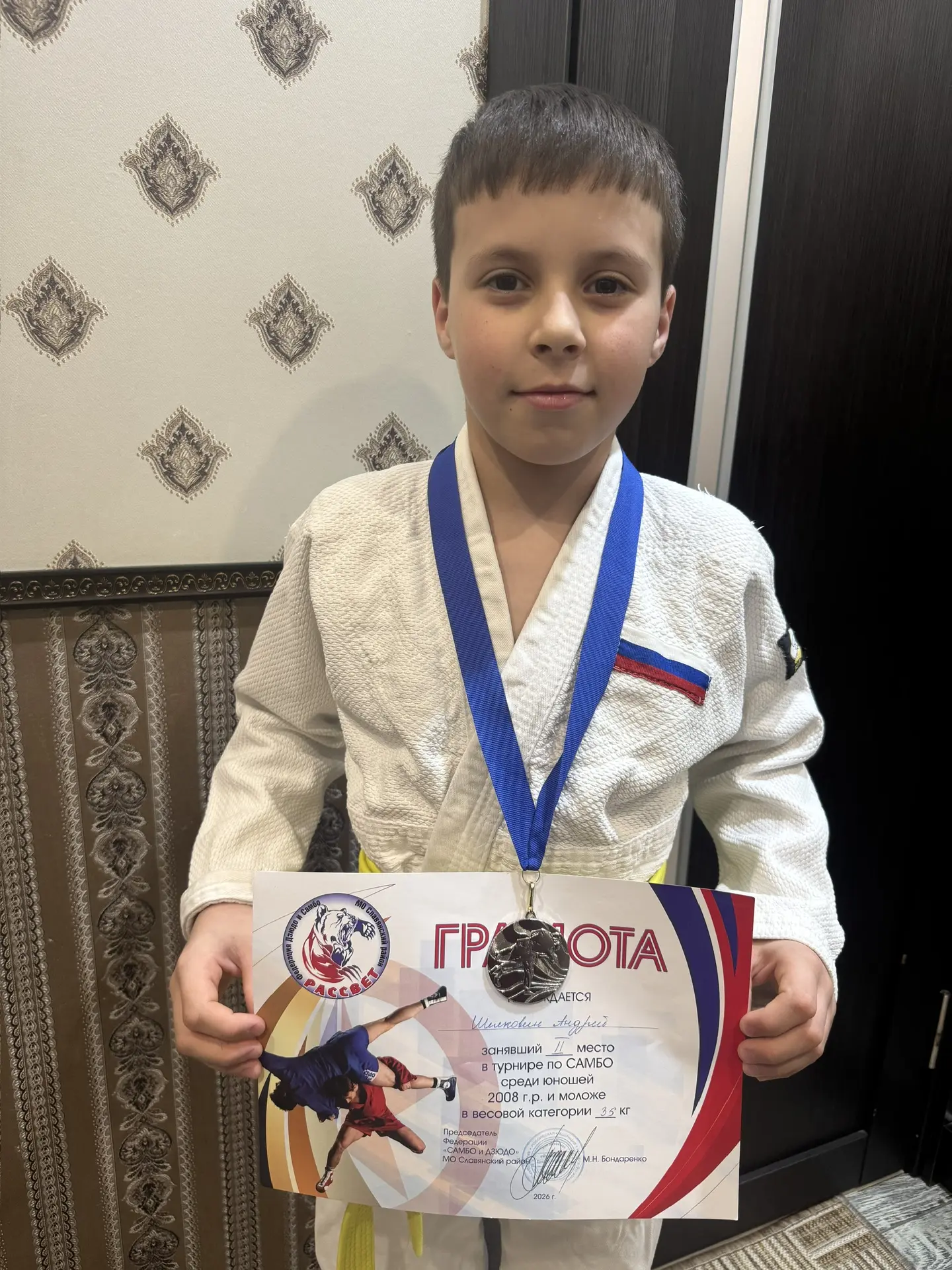 Шелковин Андрей ученик 3б класса в соревнованиях по Самбо занял 2 место!!! Поздравляем, Андрей! Так держать!!!