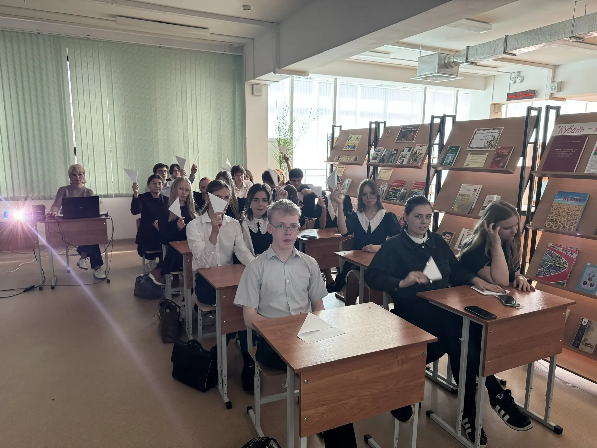 11а и 11б вместе с учителем русского языка Анной Анатольевной, а также нашими замечательными библиотекарями отправились в литературно-историческую экспедицию под названием «Великим огненным годам святую память сохраняем». Это не просто урок. Это разговор с прошлым, от которого нельзя отвернуться.